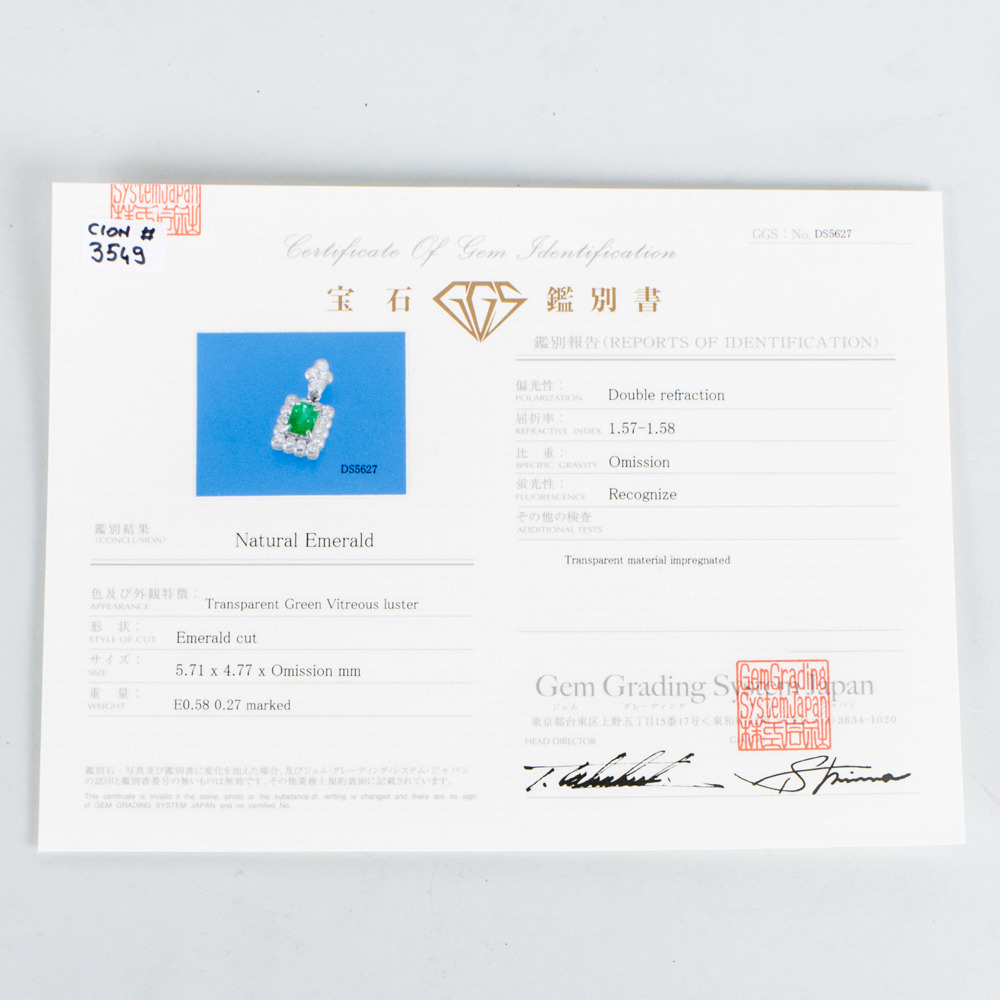 Bilder HÄNGE MED KEDJA, platina, smaragd ca 0.58 ct och briljantslipade diamanter tot ca 0.27 ct
