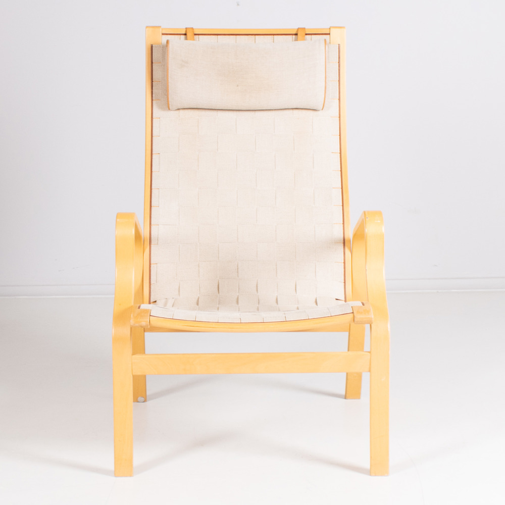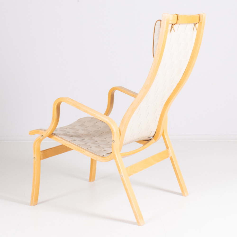 Stomme av bok, flätad sits av sadelgjord, sitthöjd ca 35, rygghöjd ca 102 cm
