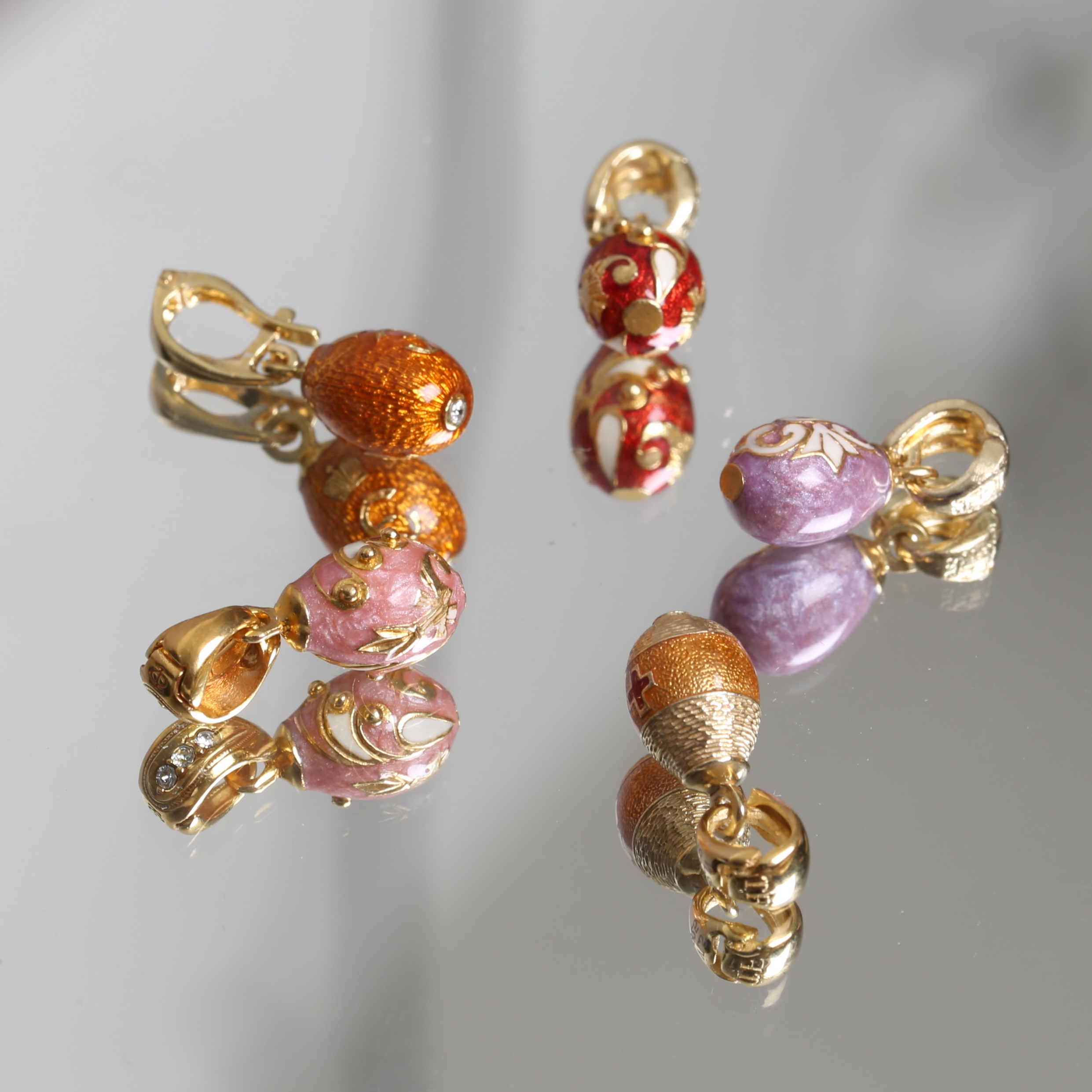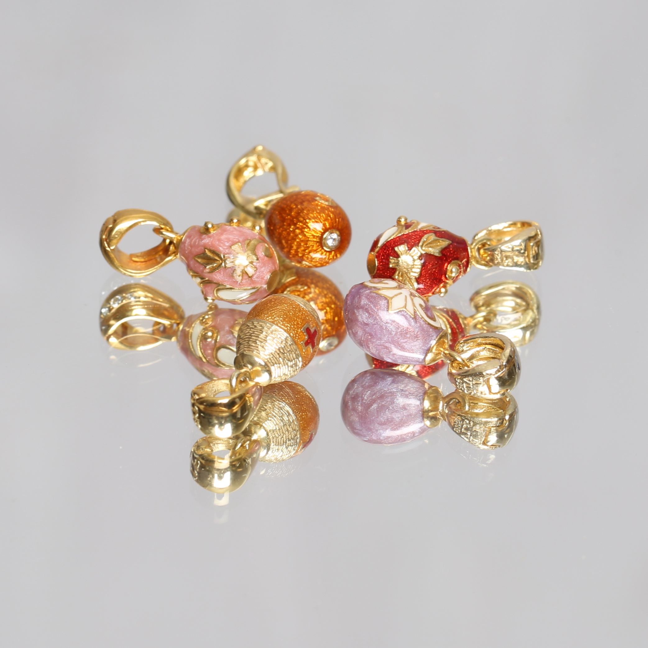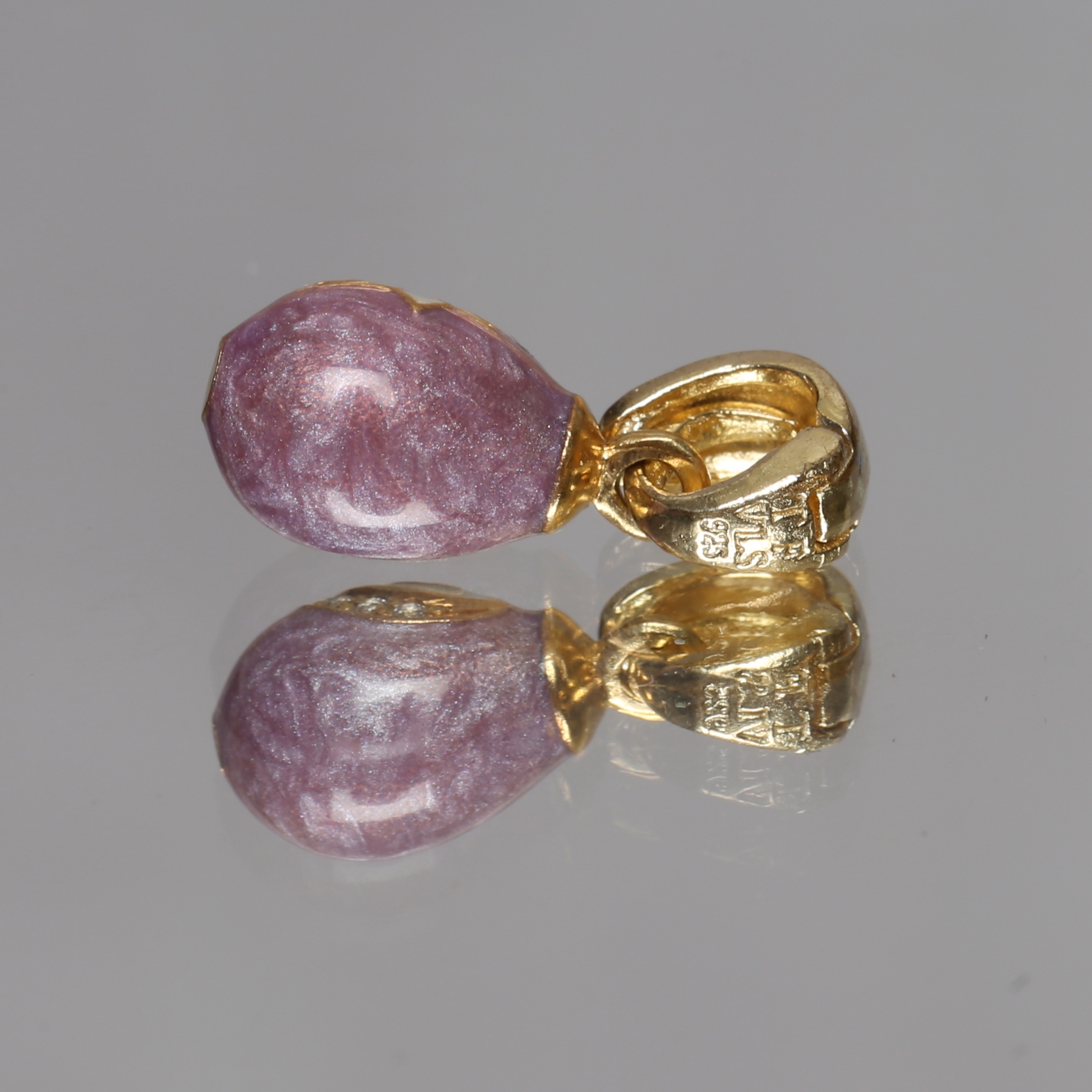 Bilder PENDANT, egg, gilded silver, white/brown enamel, cz, design Carl Fabergé by A Jewel Veronika / HÄNGE, ägg, förgyllt silver, vit/brun emalj, cz, design Carl Fabergé by A Jewel Veronika.