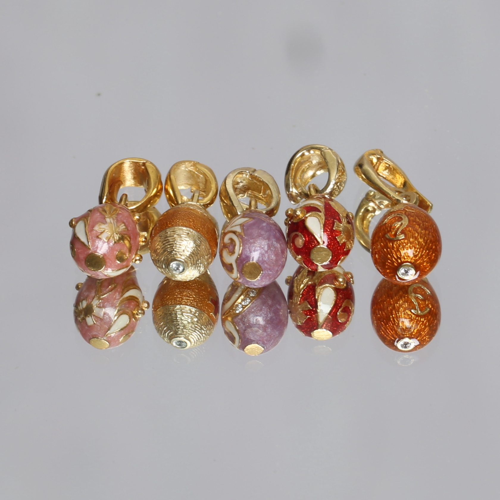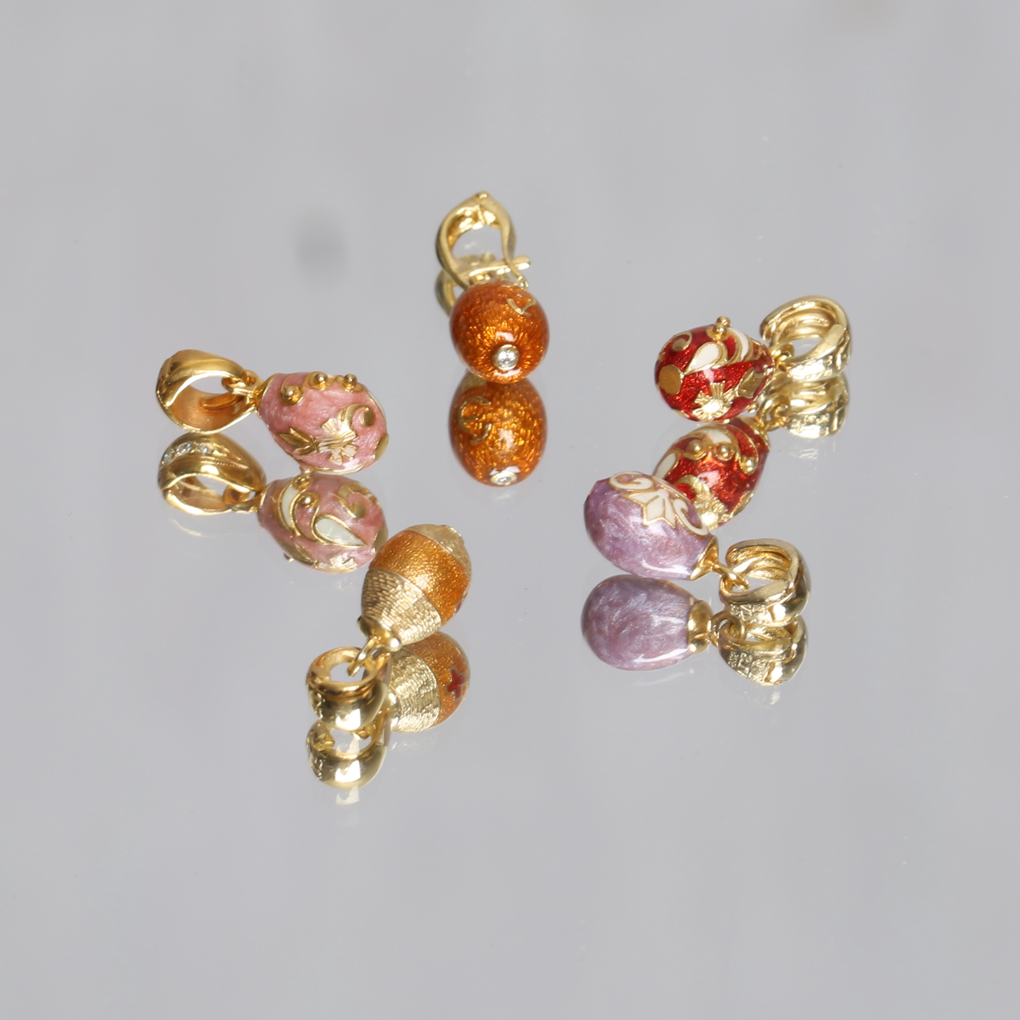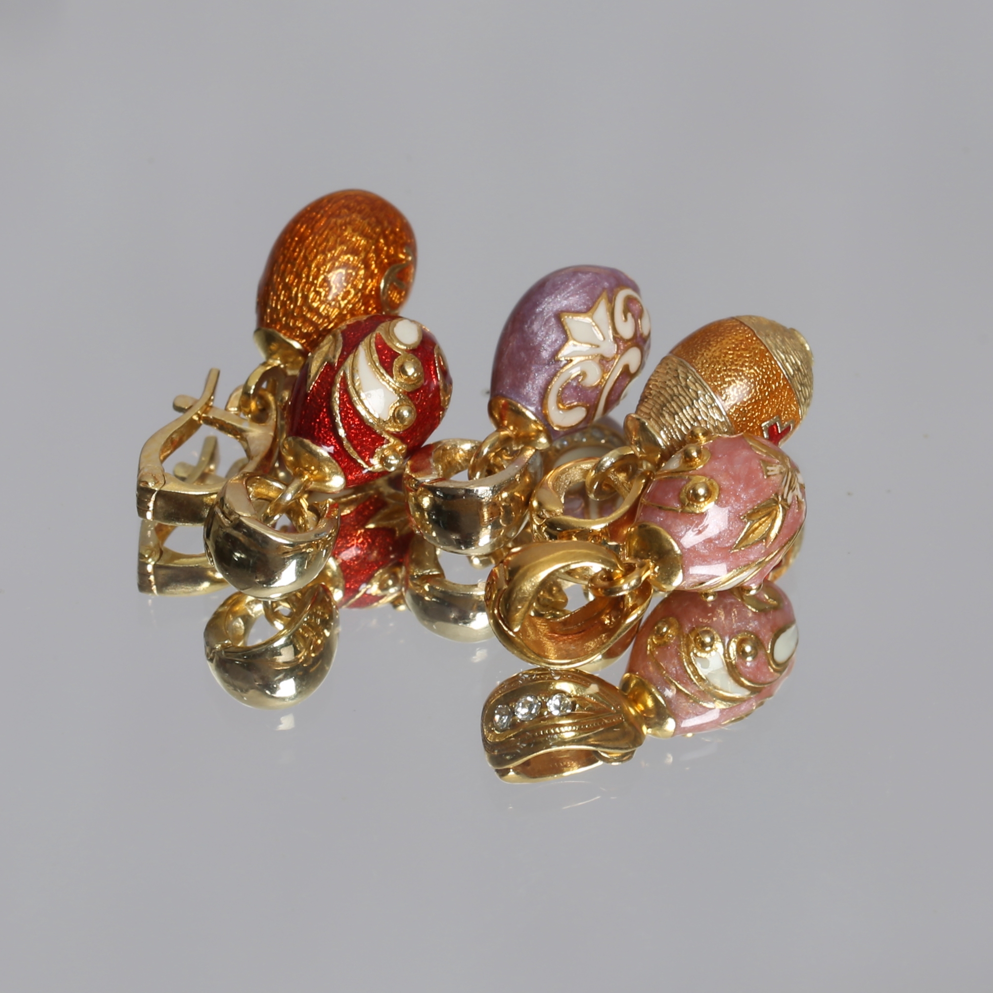 Bilder PENDANT, egg, gilded silver, white/brown enamel, cz, design Carl Fabergé by A Jewel Veronika / HÄNGE, ägg, förgyllt silver, vit/brun emalj, cz, design Carl Fabergé by A Jewel Veronika.