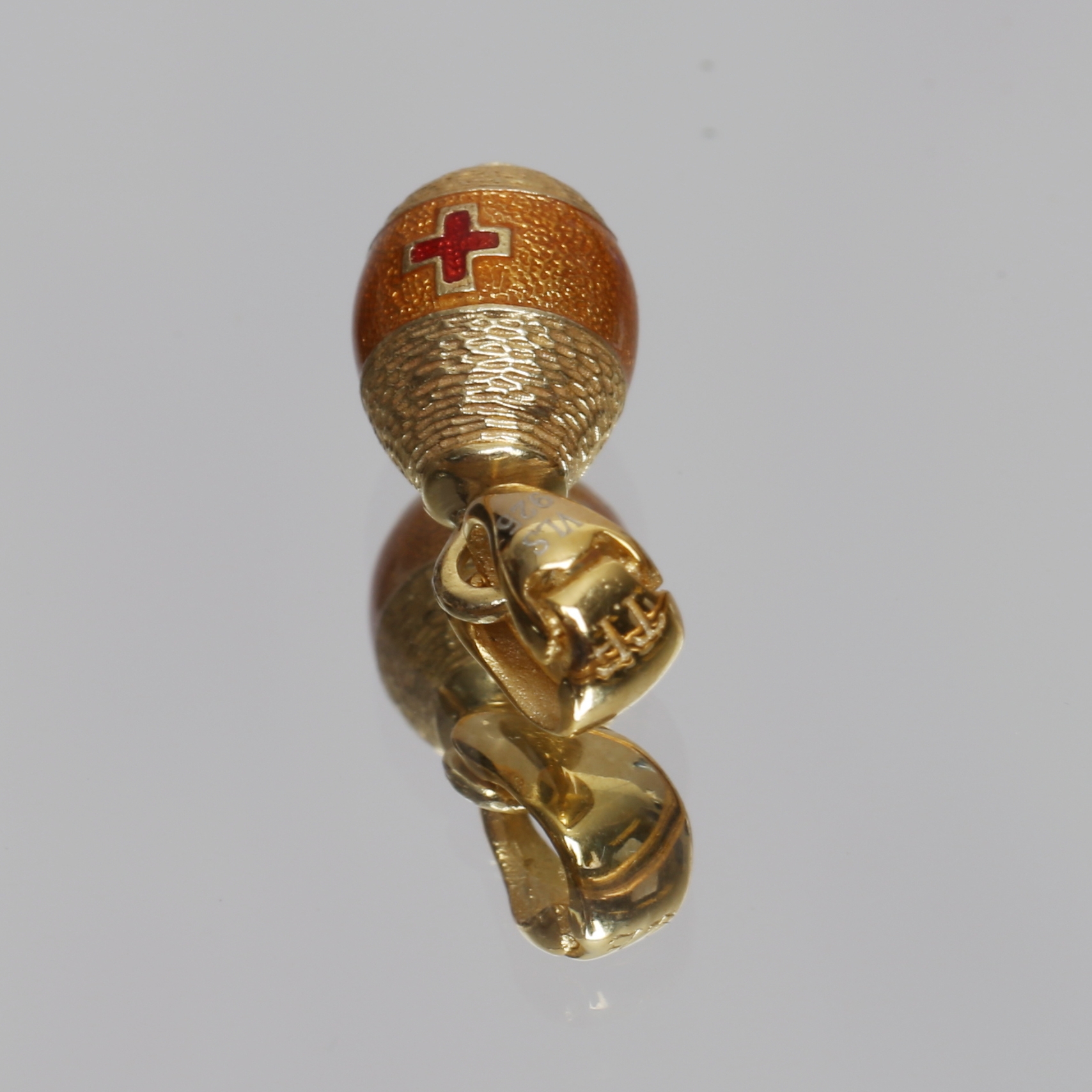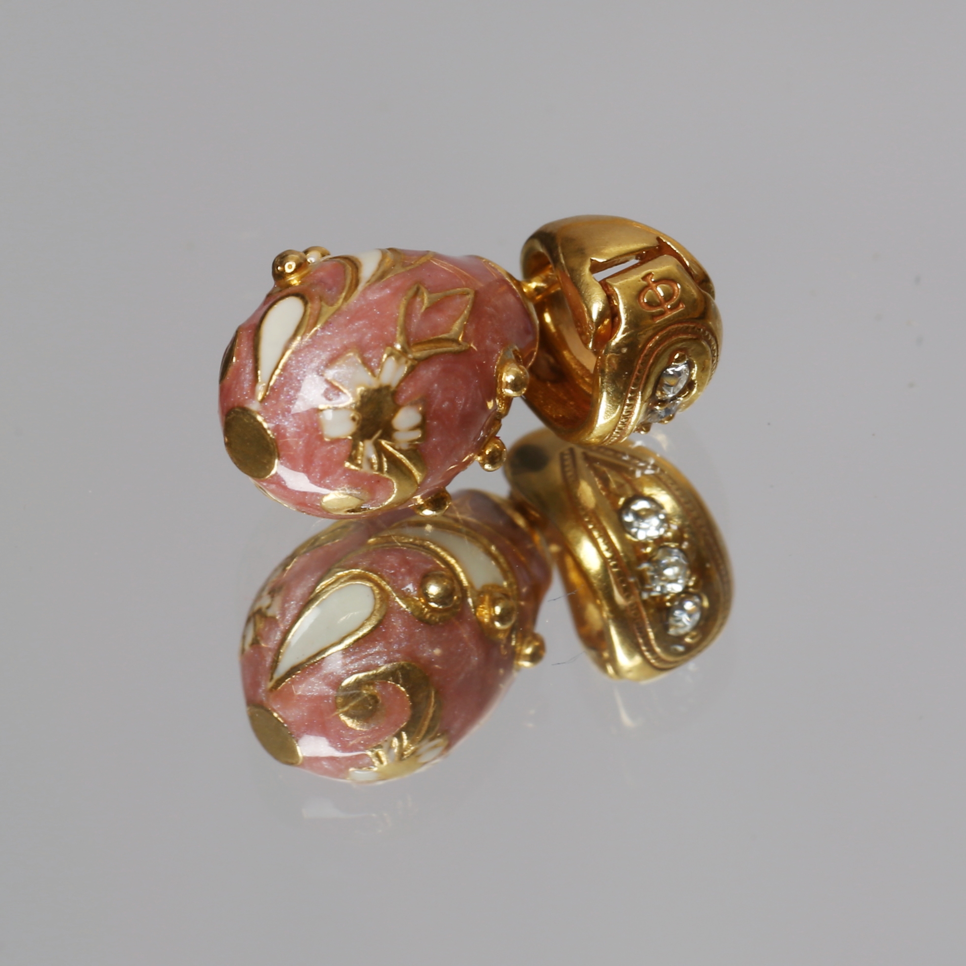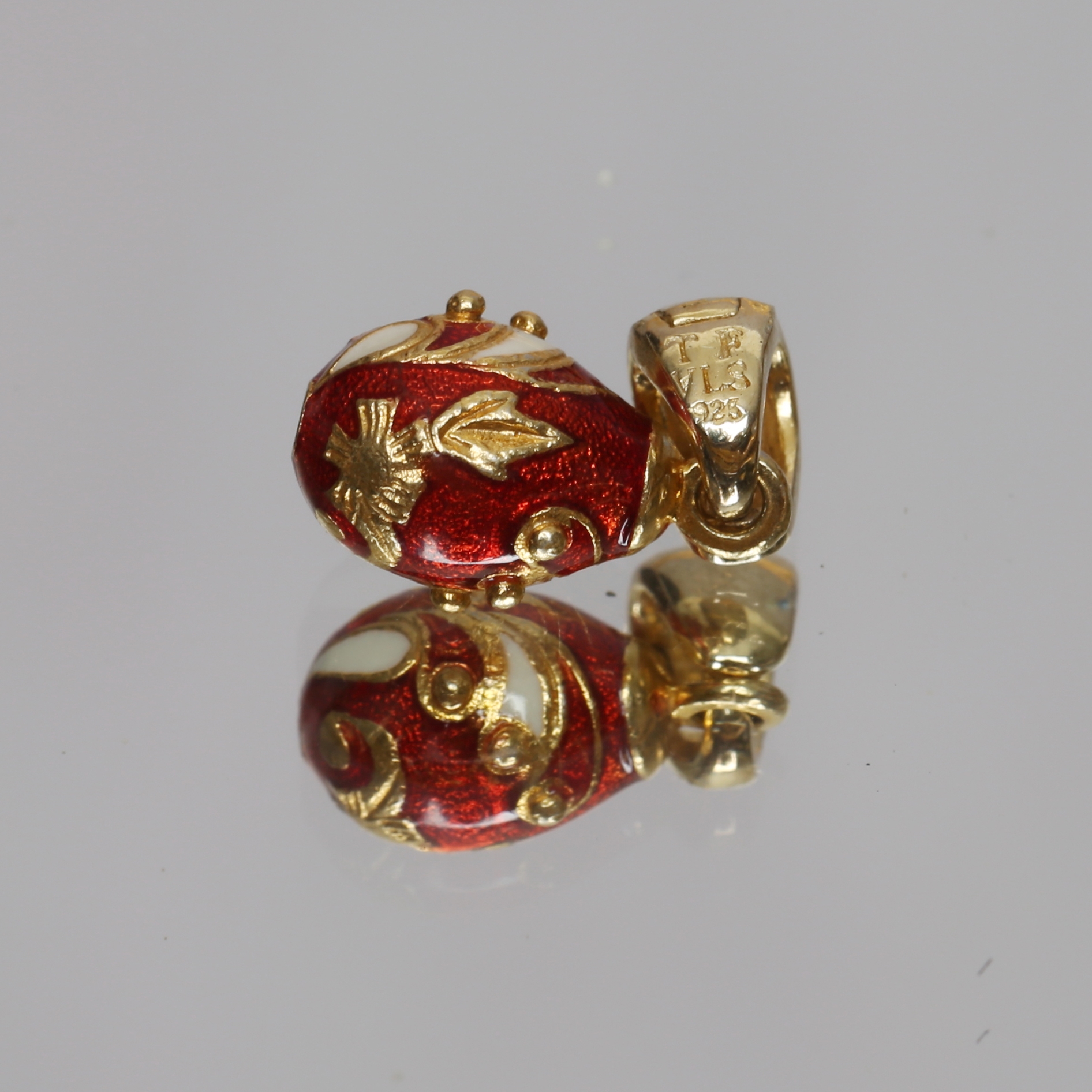 Auktioner Guld, Silver & Smycken PENDANT, egg, gilded silver, white/brown enamel, cz, design Carl Fabergé by A Jewel Veronika / HÄNGE, ägg, förgyllt silver, vit/brun emalj, cz, design Carl Fabergé by A Jewel Veronika.