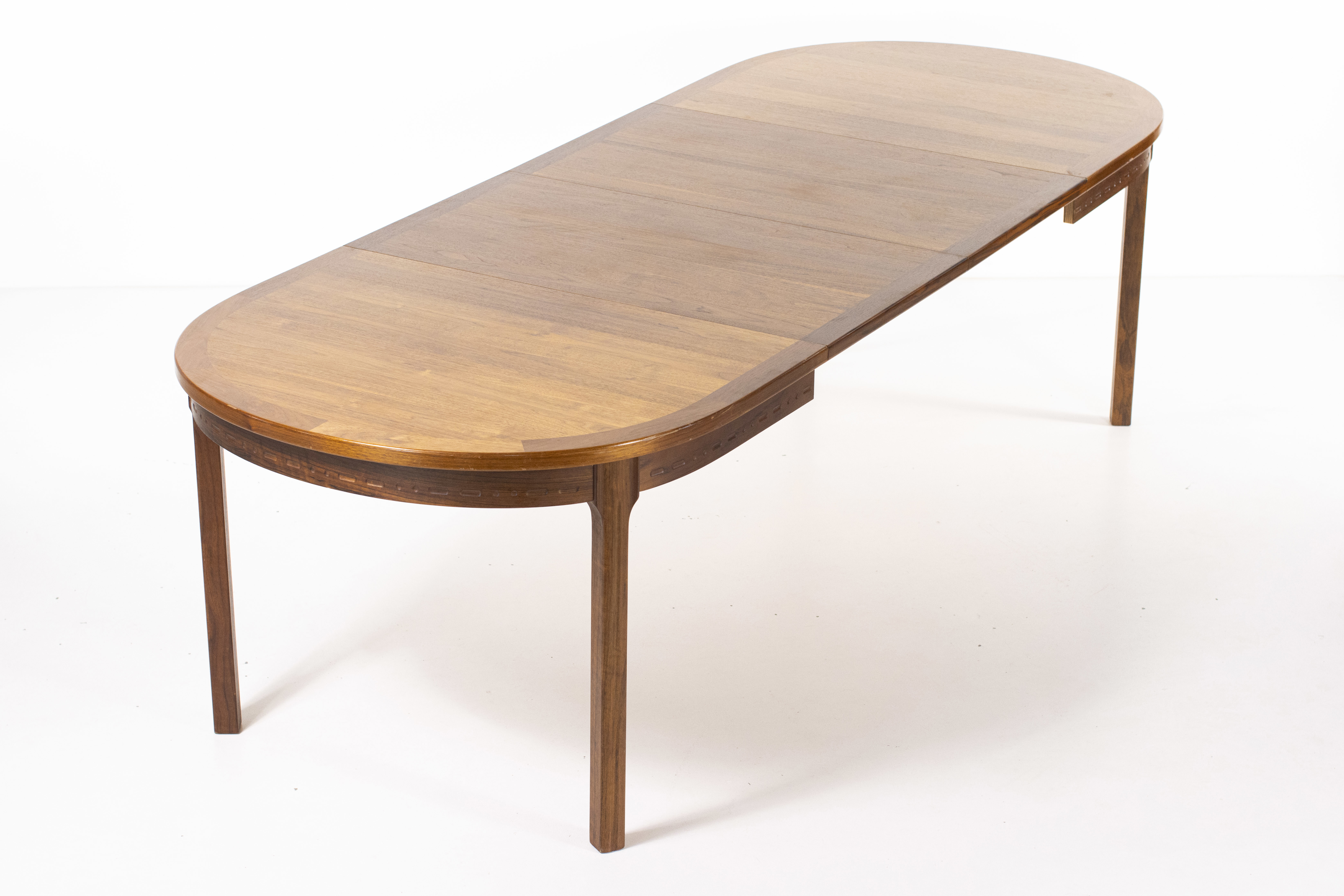 Nils Jonsson, matbord, "Rimbo", Troeds, valnötsfanér, 153x100 cm, 2 st iläggskivor på vardera 55 cm medföljer, höjd 73 cm