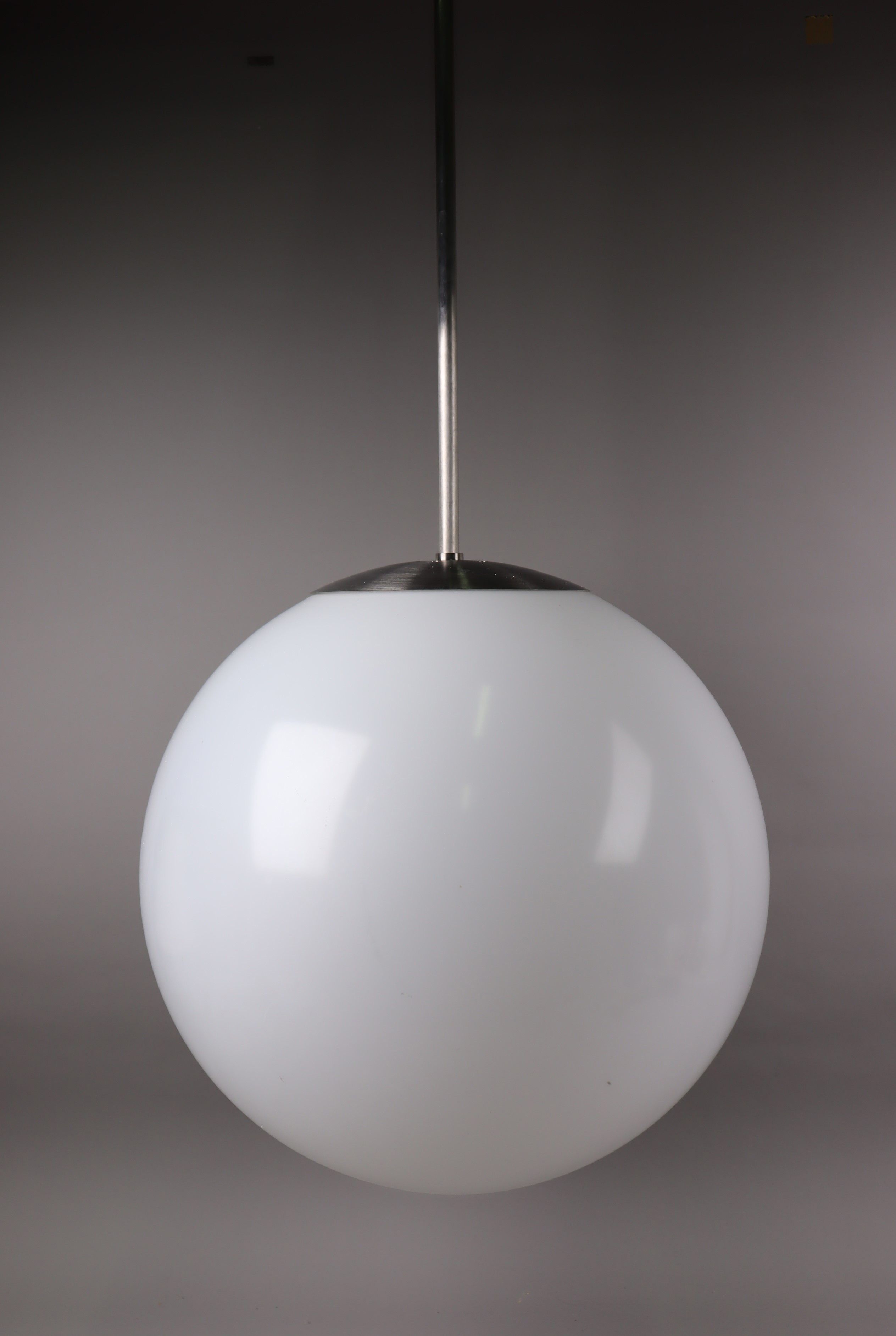 Bilder Klotlampa, funkis, metall med stor opalin plastskärm