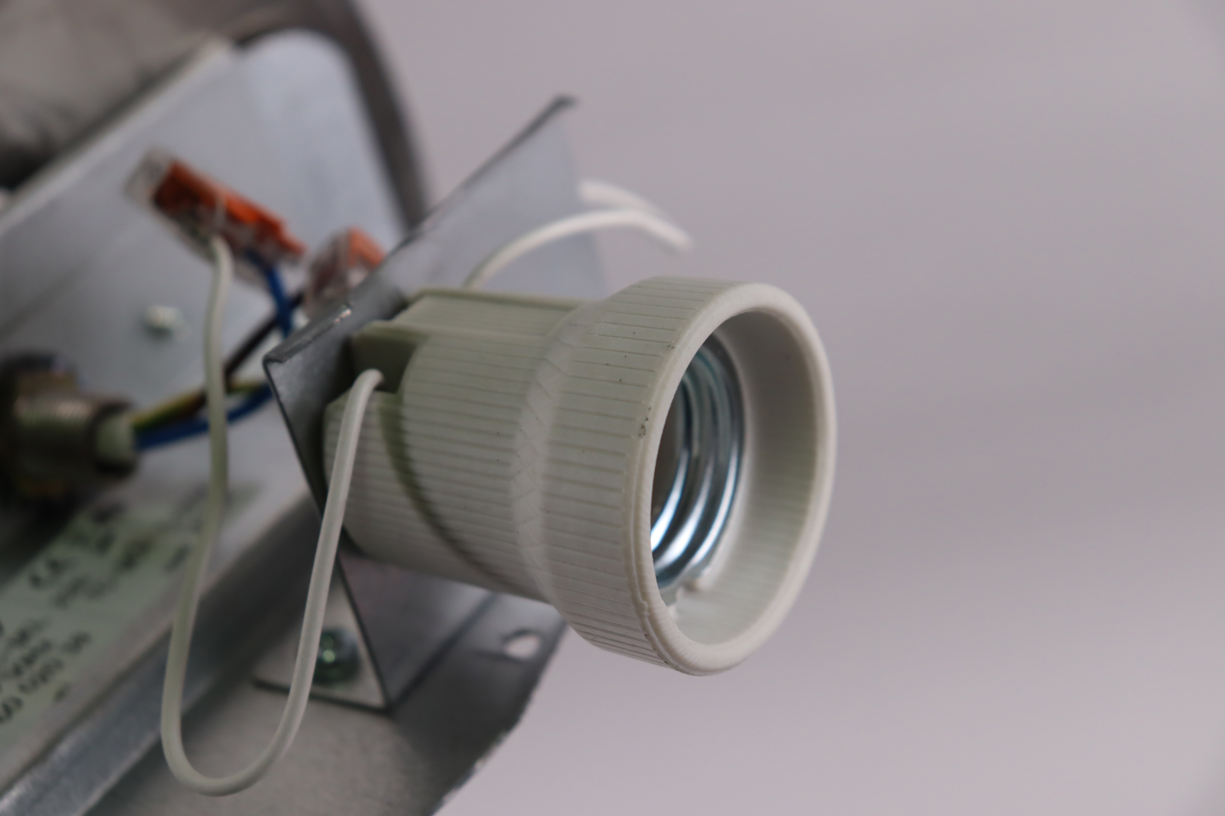 Klotlampa, funkis, metall med stor opalin plastskärm