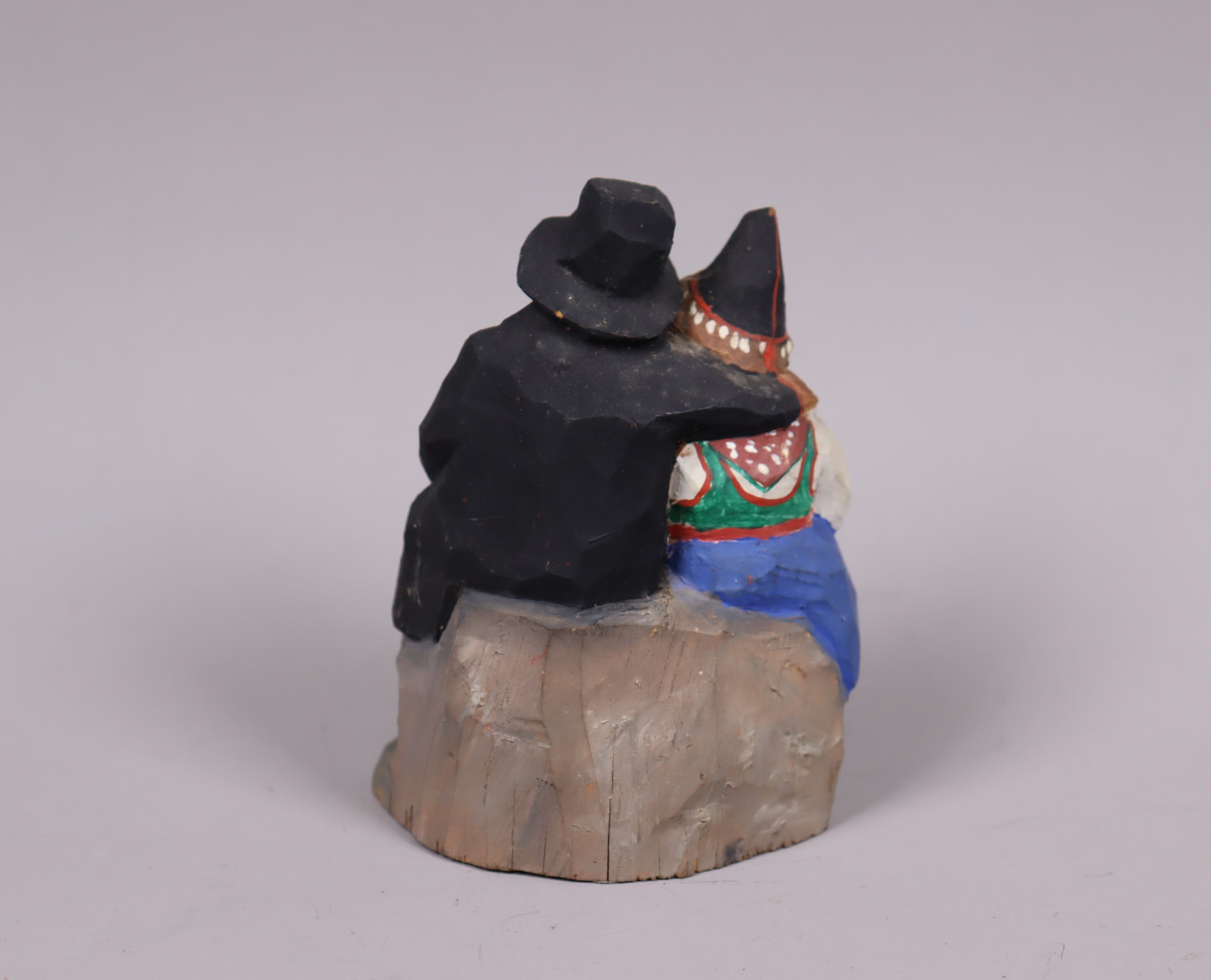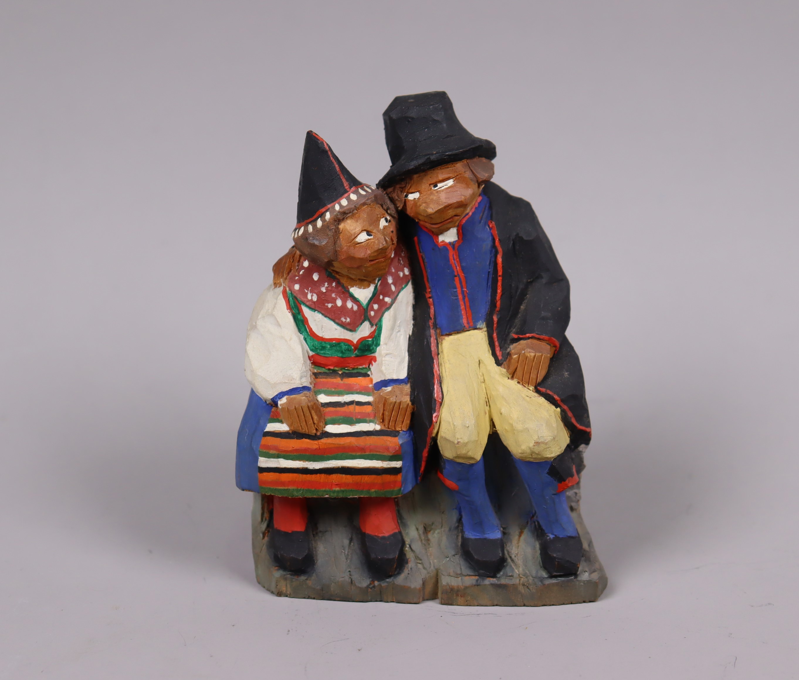 Anders Blanck, Rättvik, snidad trägubbe, sittande dalkulla och dalmas i folkdräkt