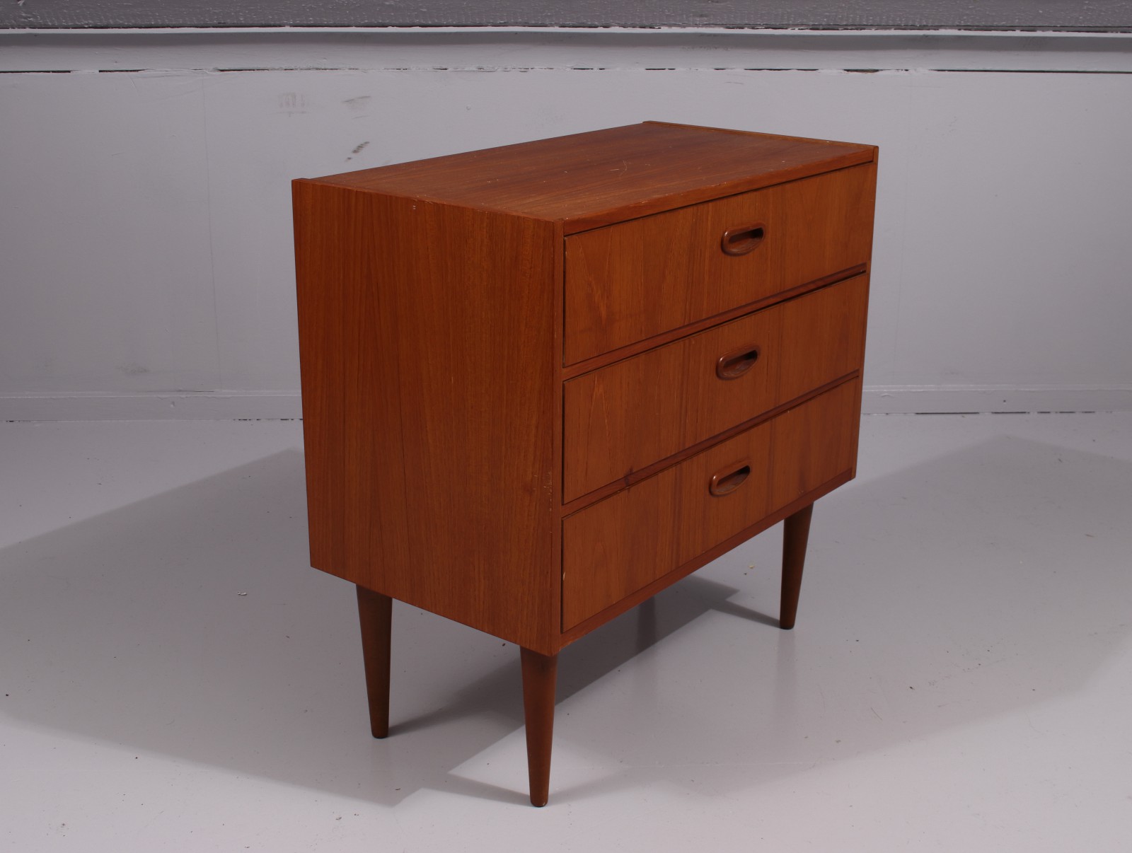 Fanerad med teak, 1960-tal, mindre åldersrelaterat slitage, H.60, B.60, Dj.32 cm. (vån3)