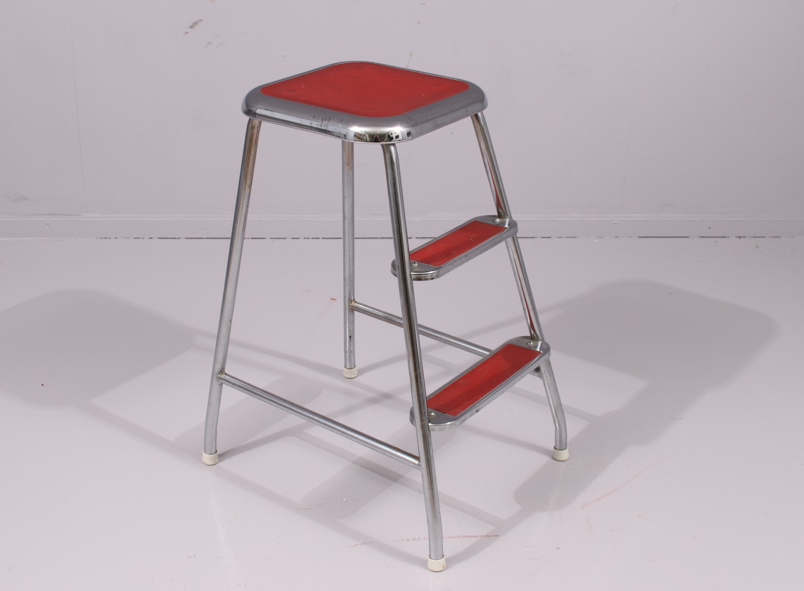 Stomme i metall, steg och sits med plastmatta, 1970-tal, höjd 58 cm. (vån3)