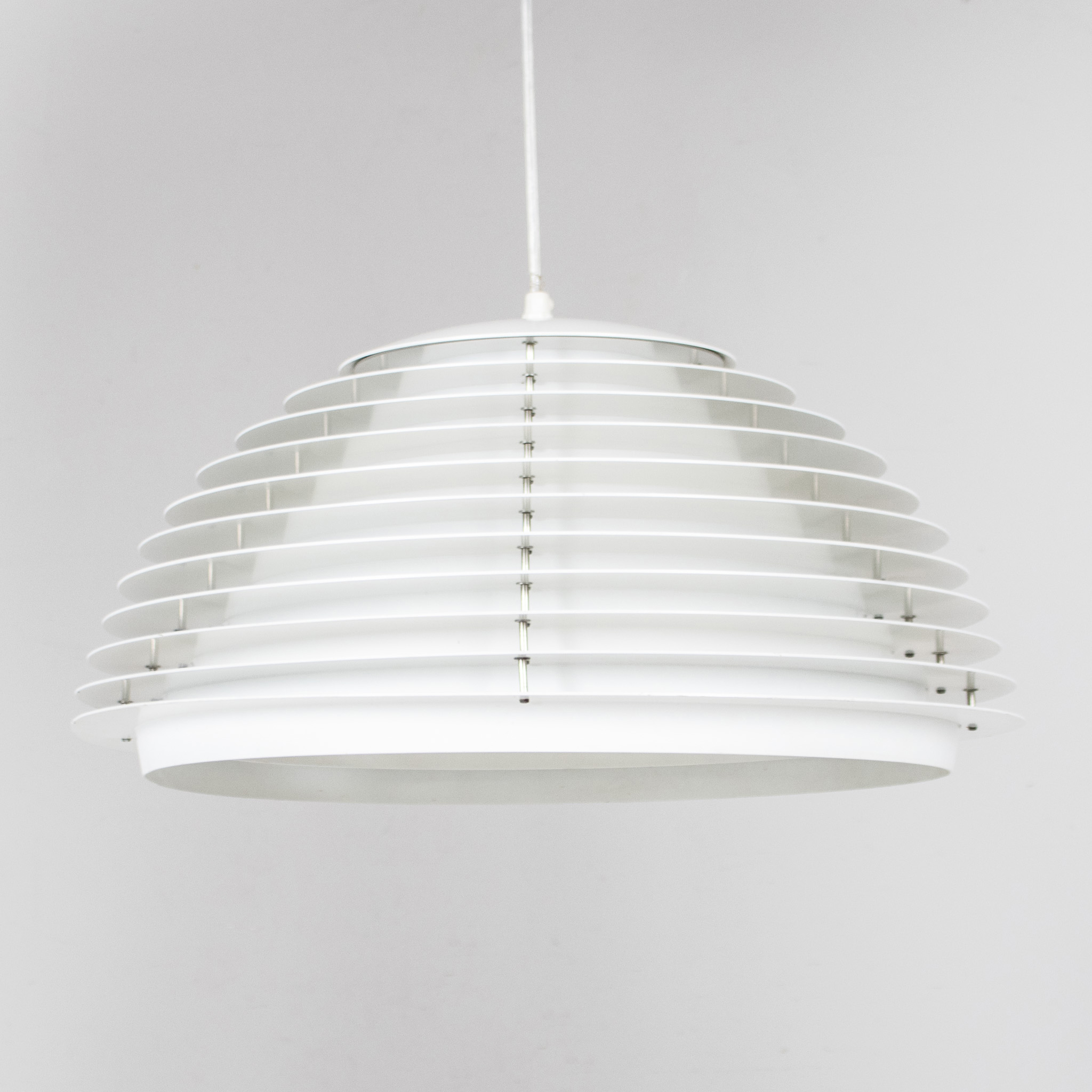 Vitlackerad metall, en ljuspunkt, höjd exklusive textilsladd 26 cm, diameter ca 50 cm