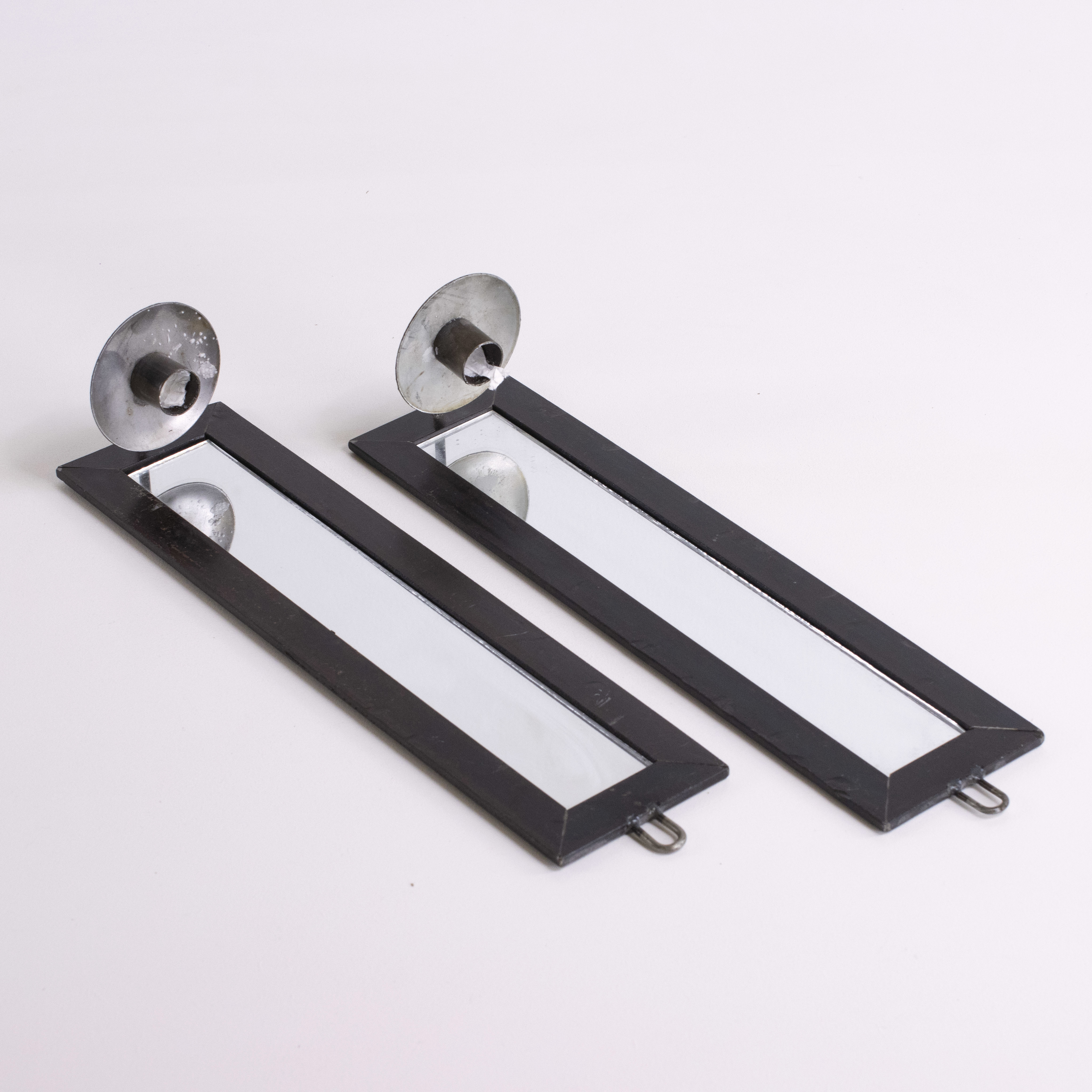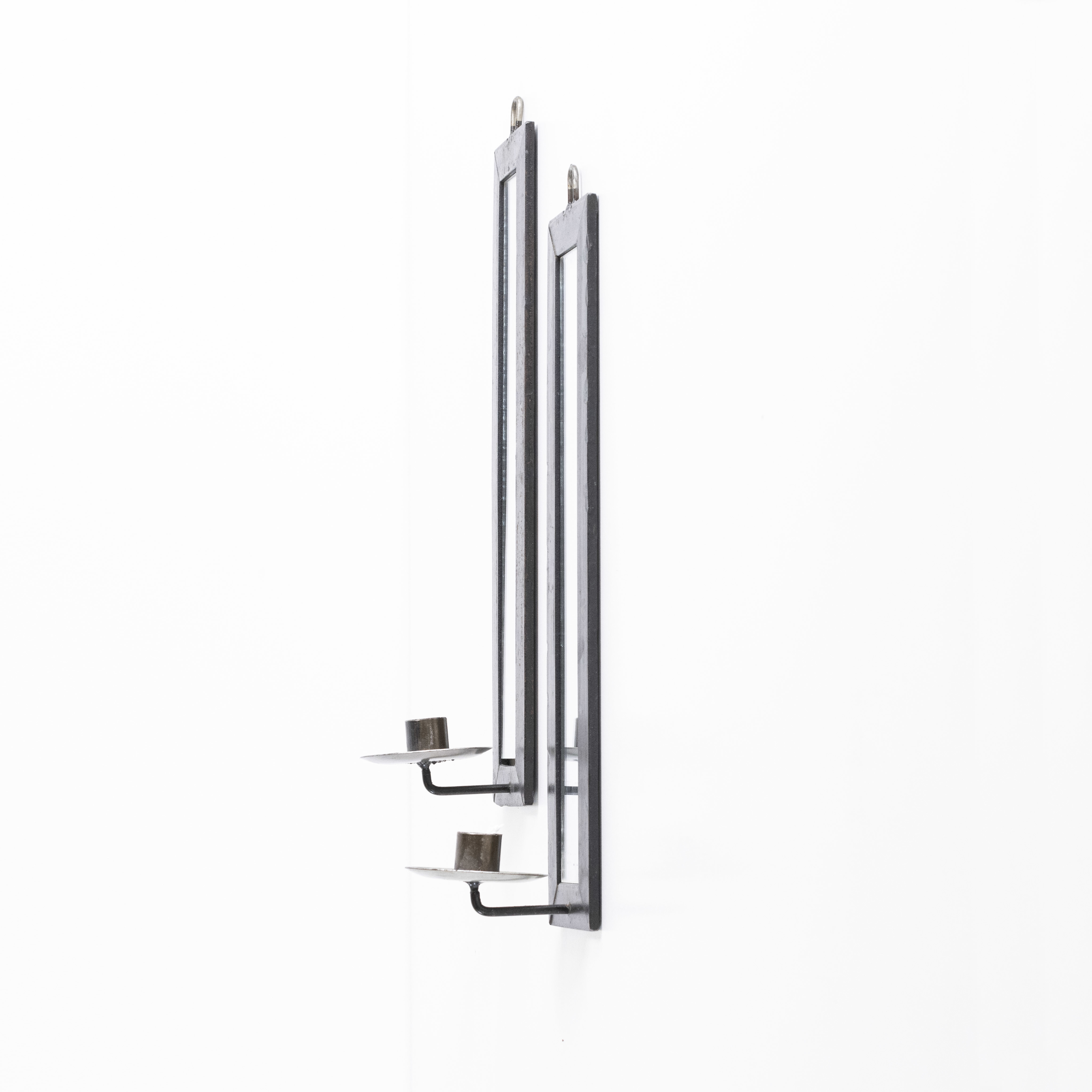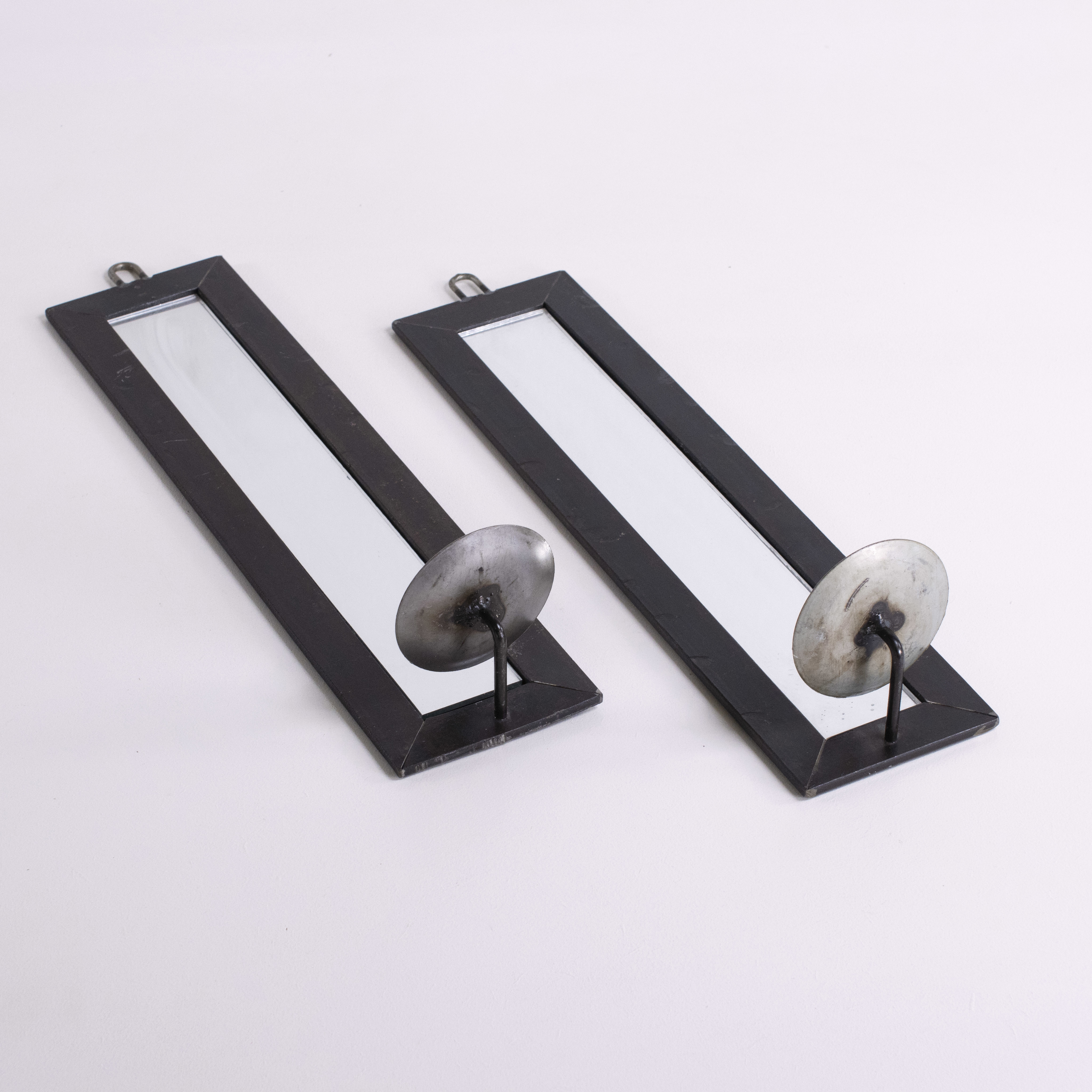 Ljuslampetter, ett par, plattjärn/spegel, en ljushållare, modern tillverkning, höjd 42 cm