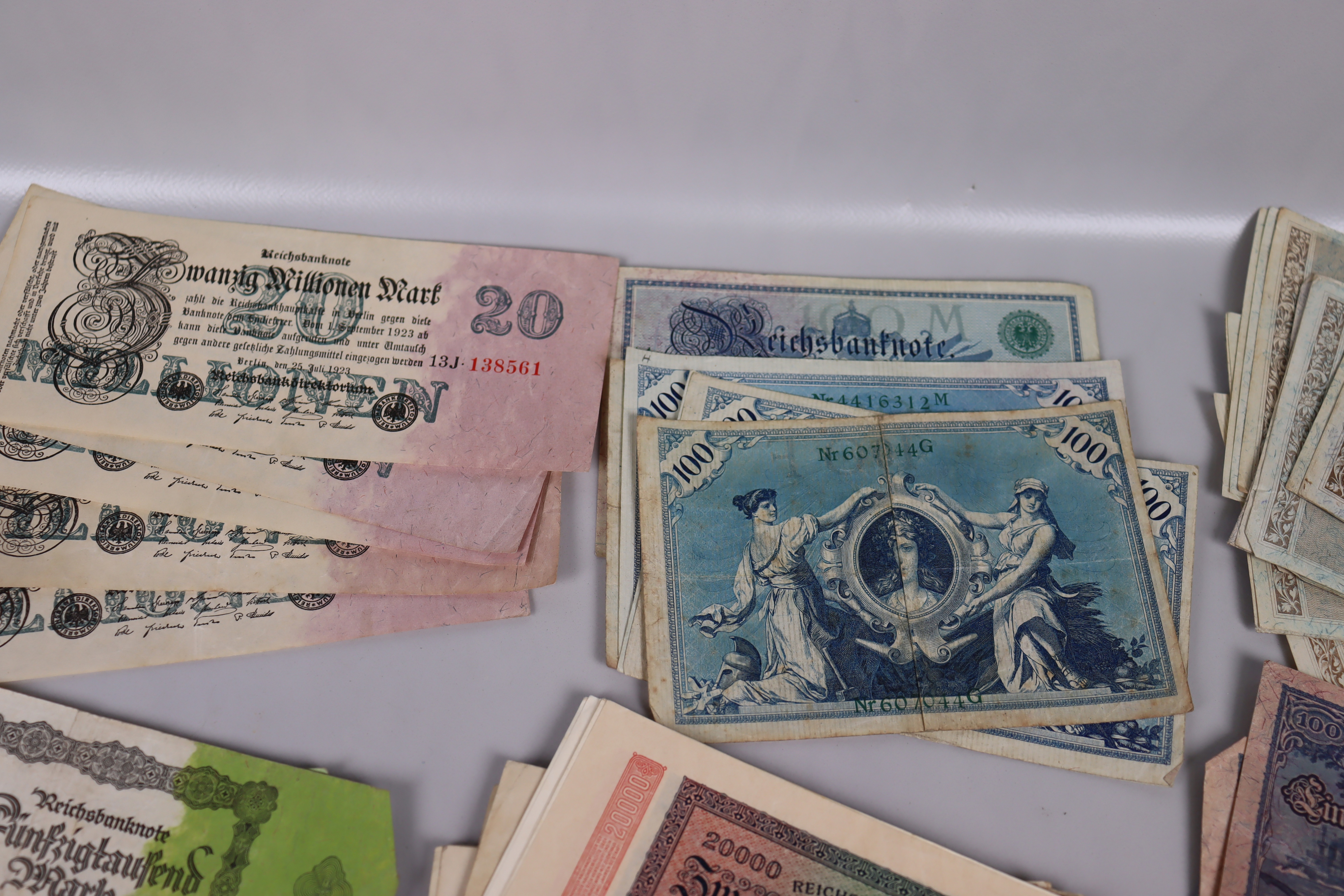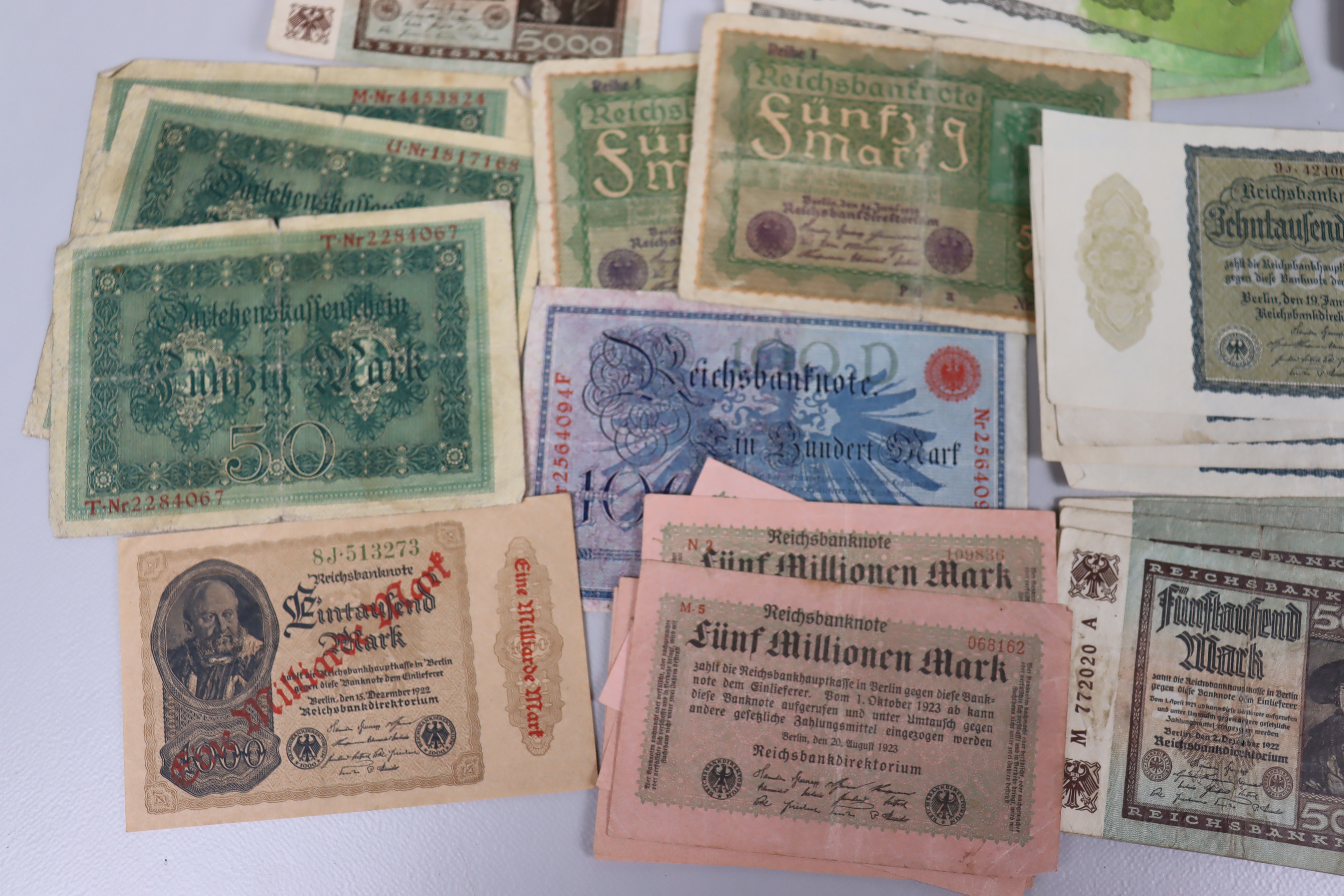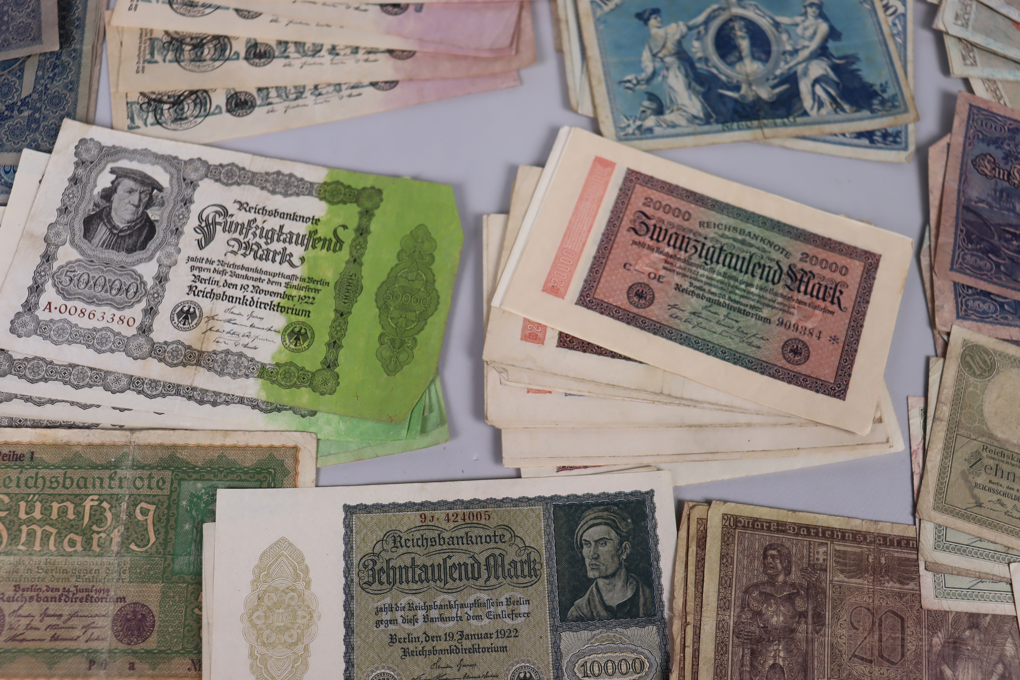 Den tyska inflationen â som var en av historiens vĂ€rsta â var en följd av versaillesfredens alltför hĂ„rda diktat och tunga pĂ„lagor. Den första inflationssedeln utgavs den 24 juni 1919 och var pĂ„ 50 Mark. 1922 hade en typisk sedel valören 10 000 Mark, vĂ„ren 1923 500 000 Mark och hösten 1923 miljardbelopp. I slutet av 1923 nĂ„dde man biljonbelopp. Den högsta valör som utgavs var 100 biljoner Mark. Vid denna tid skrevs valutan om sĂ„ att en biljon Mark blev 1 Rentenmark och strax dĂ€refter 1 Reichsmark. Sammanlagt utgavs 76 inflationssedlar, varav nĂ„gra för samlaren âsvĂ„raâ objekt.