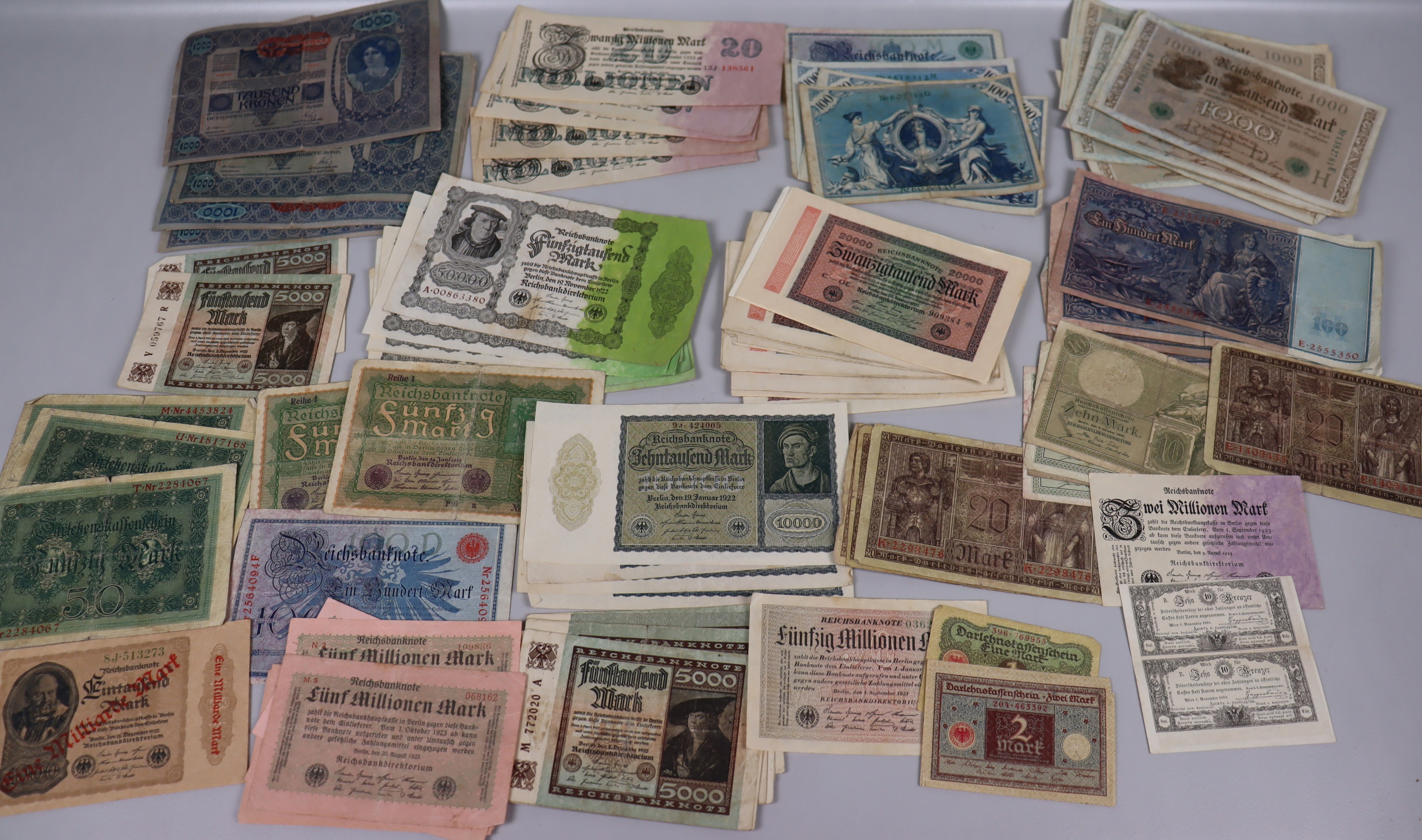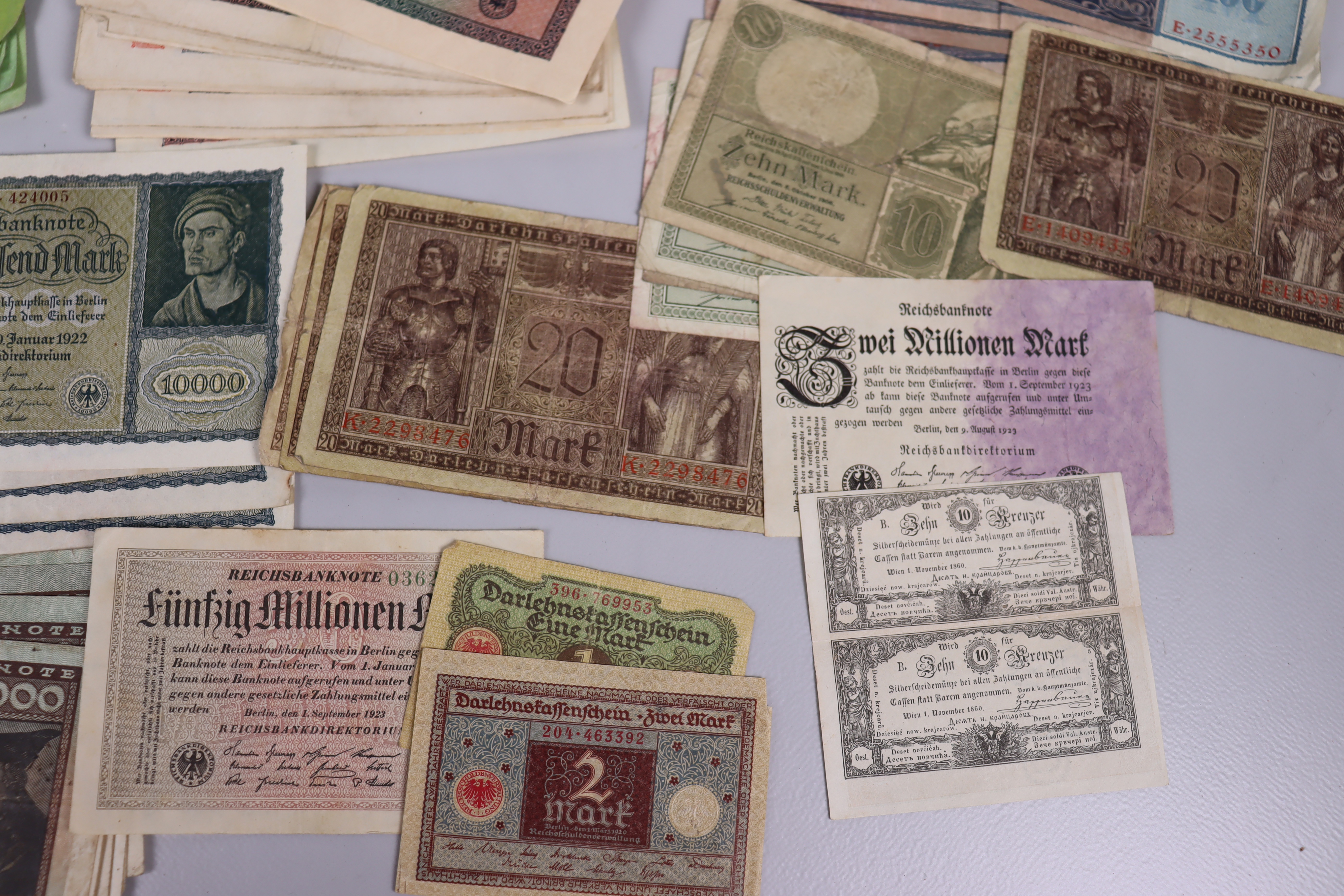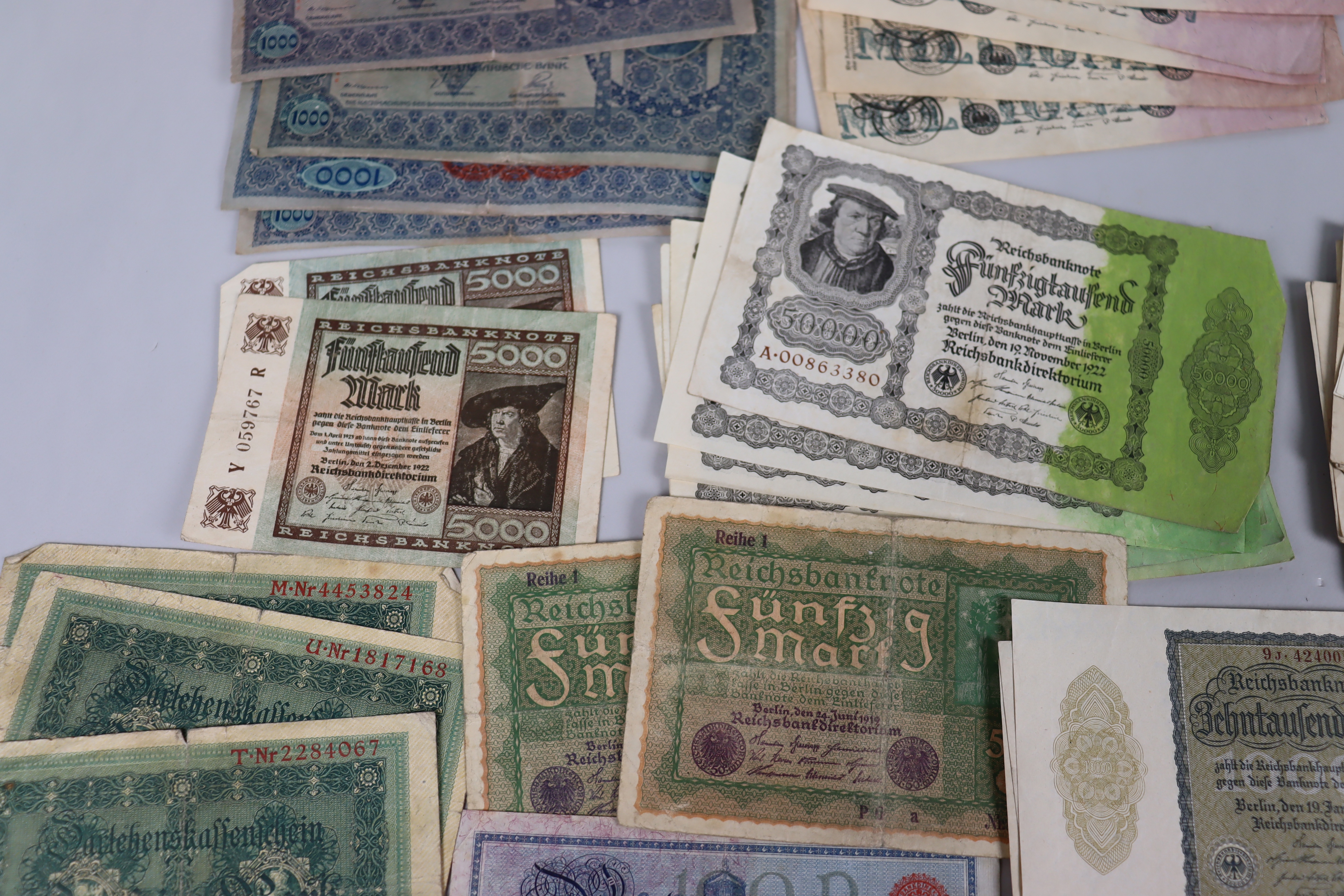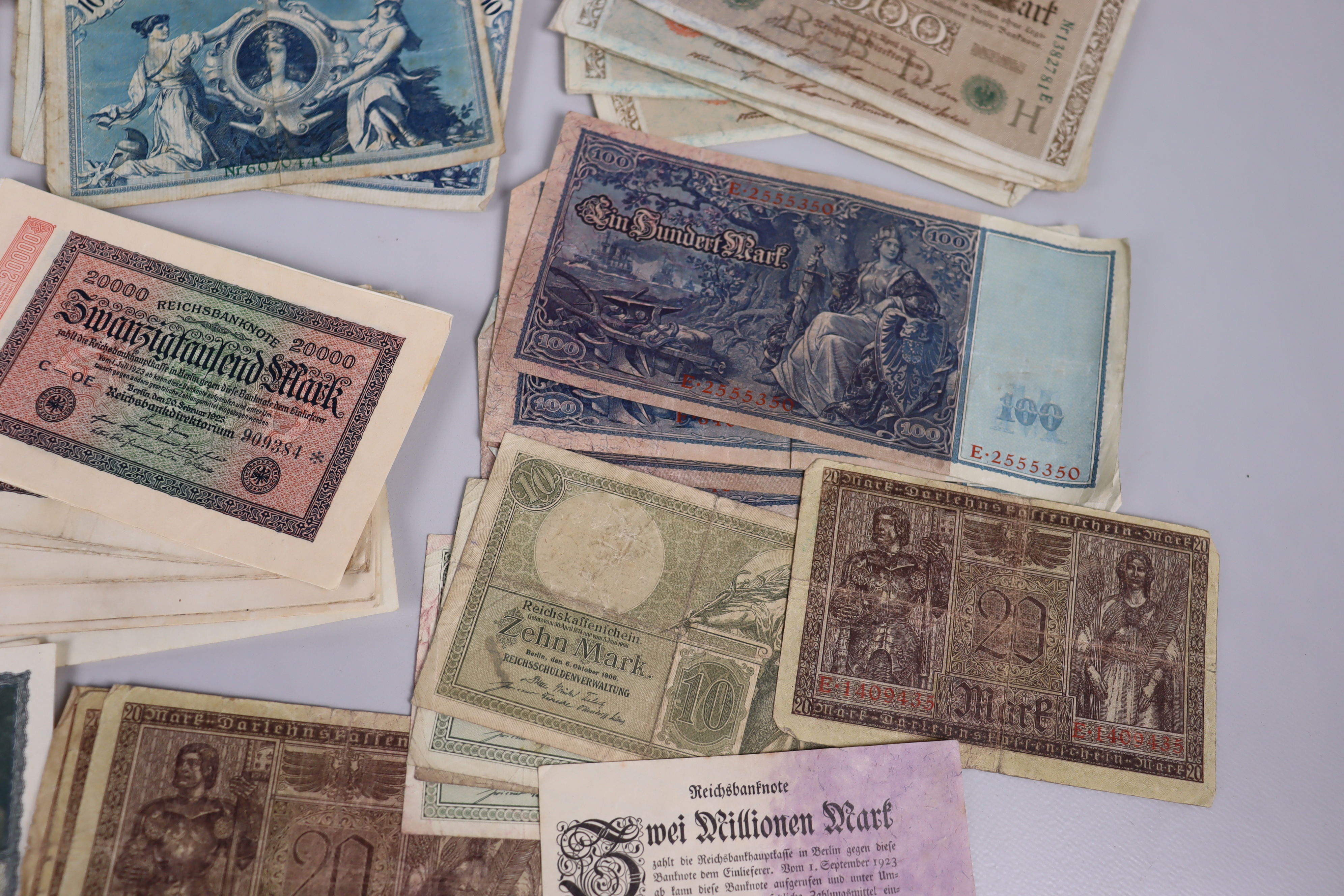 Den tyska inflationen â som var en av historiens vĂ€rsta â var en följd av versaillesfredens alltför hĂ„rda diktat och tunga pĂ„lagor. Den första inflationssedeln utgavs den 24 juni 1919 och var pĂ„ 50 Mark. 1922 hade en typisk sedel valören 10 000 Mark, vĂ„ren 1923 500 000 Mark och hösten 1923 miljardbelopp. I slutet av 1923 nĂ„dde man biljonbelopp. Den högsta valör som utgavs var 100 biljoner Mark. Vid denna tid skrevs valutan om sĂ„ att en biljon Mark blev 1 Rentenmark och strax dĂ€refter 1 Reichsmark. Sammanlagt utgavs 76 inflationssedlar, varav nĂ„gra för samlaren âsvĂ„raâ objekt.