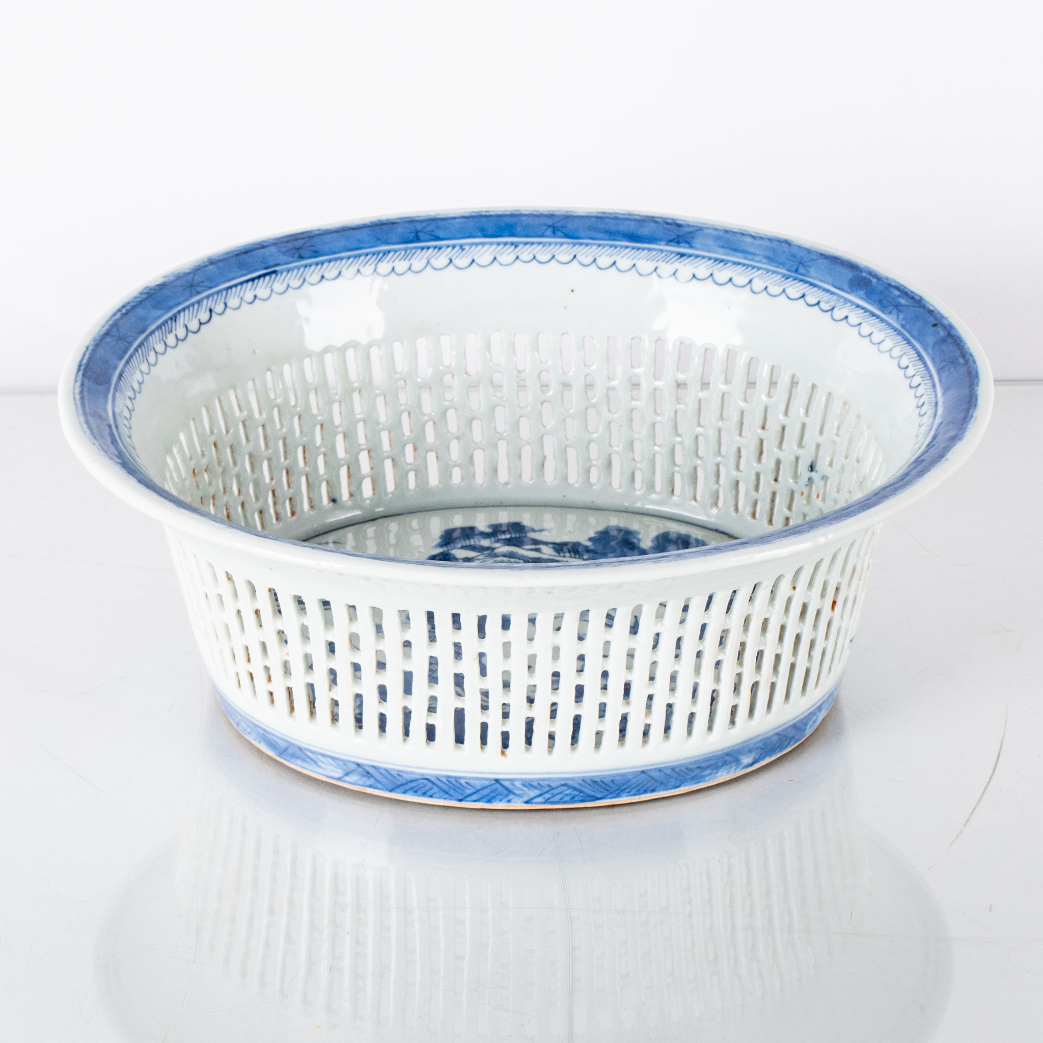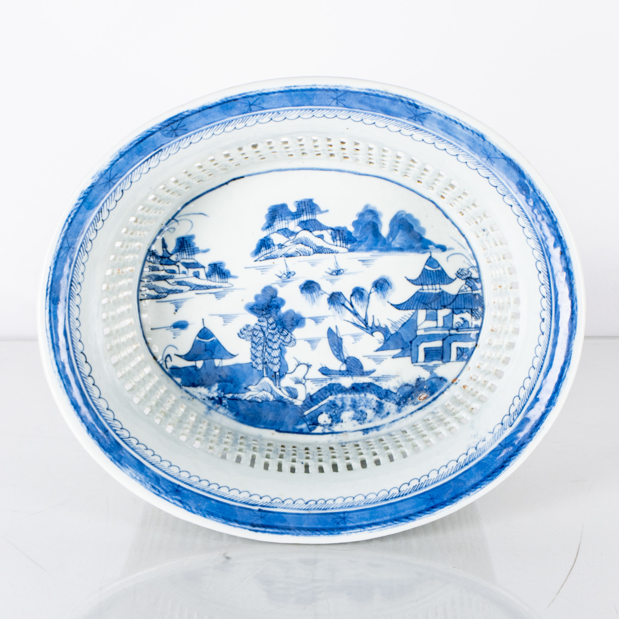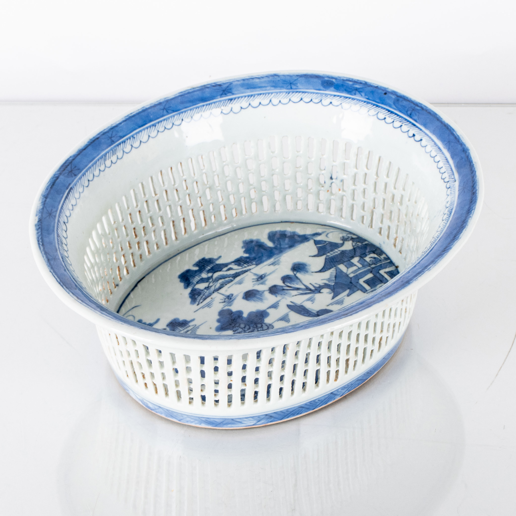 Blå dekor av landskap, höjd ca 10, 27 x 23 cm