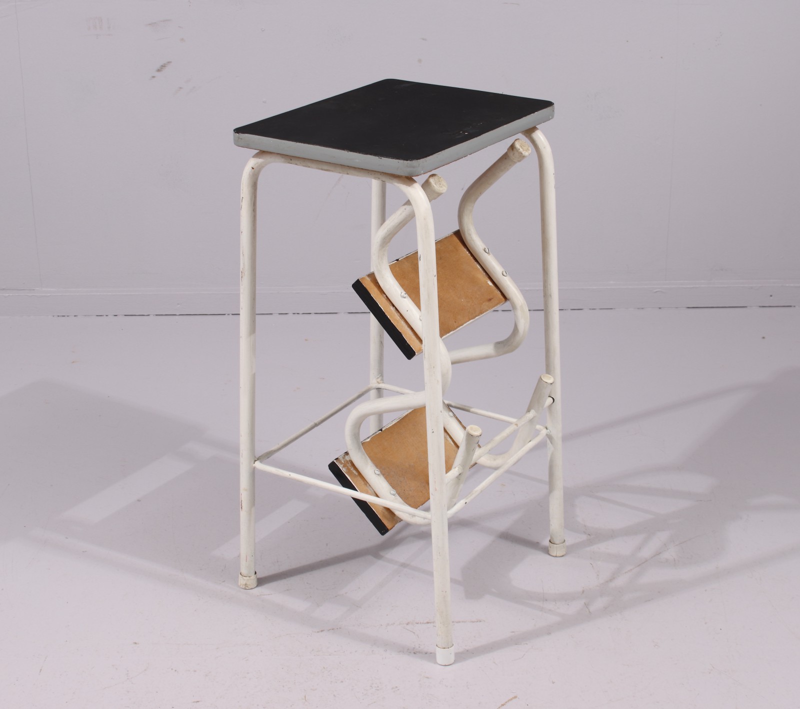 Stomme i metall, steg och sits i trä, 1950,60-tal, steg och sits med senare bemålning, höjd 62 cm. (vån3)