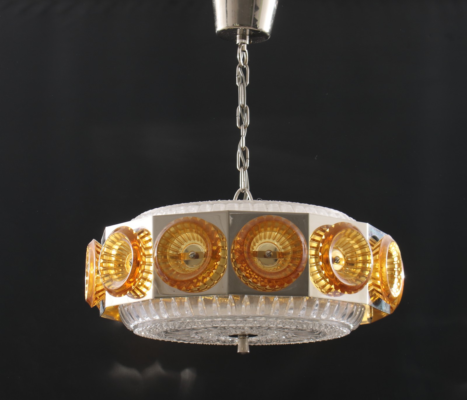 Metall och glas, 1960,70-tal, höjd utan kedja ca:17 cm, bredd 37 cm. (vån1)