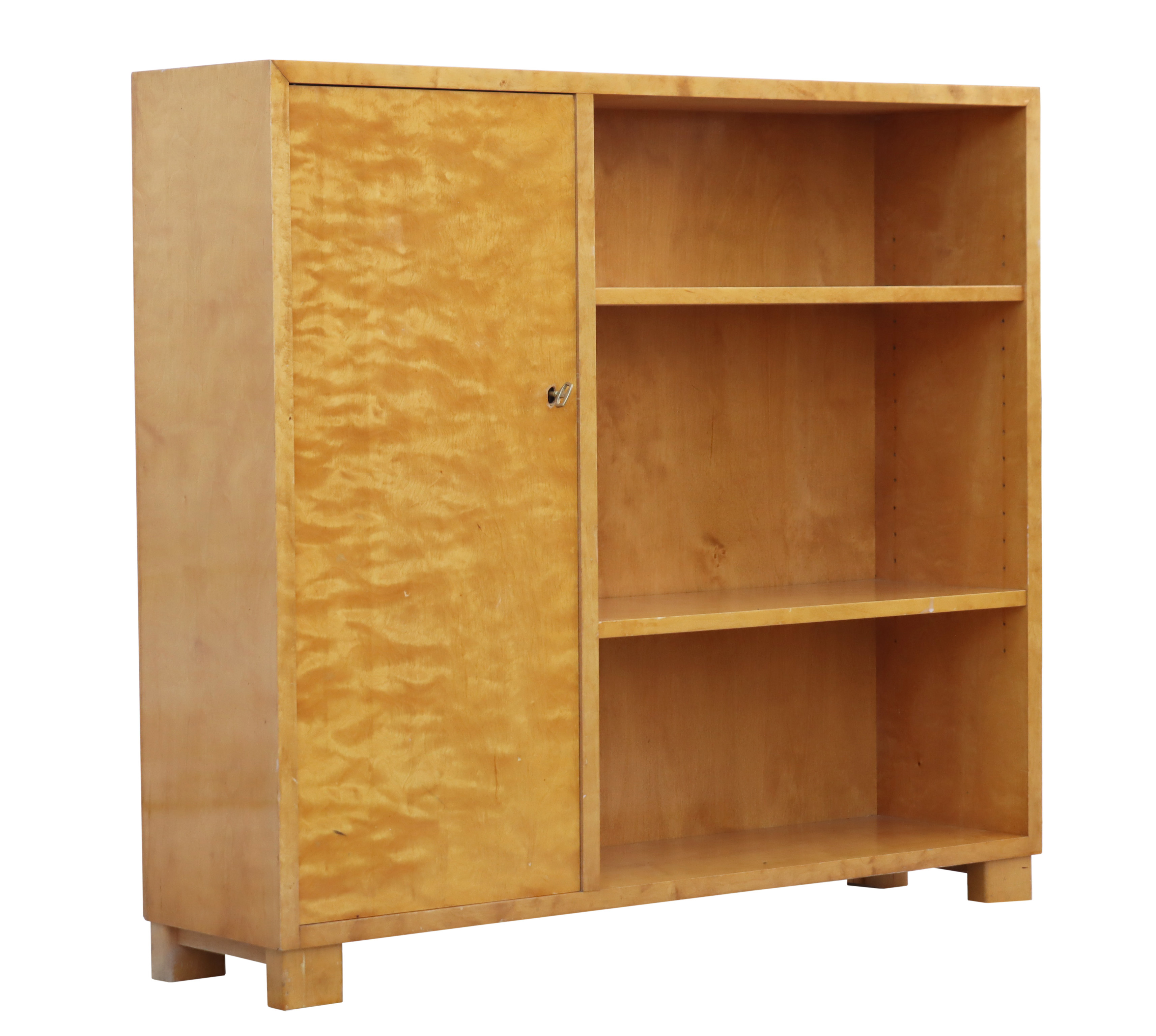 Björk. Med en dörr och två hyllor. Nyckel finns.