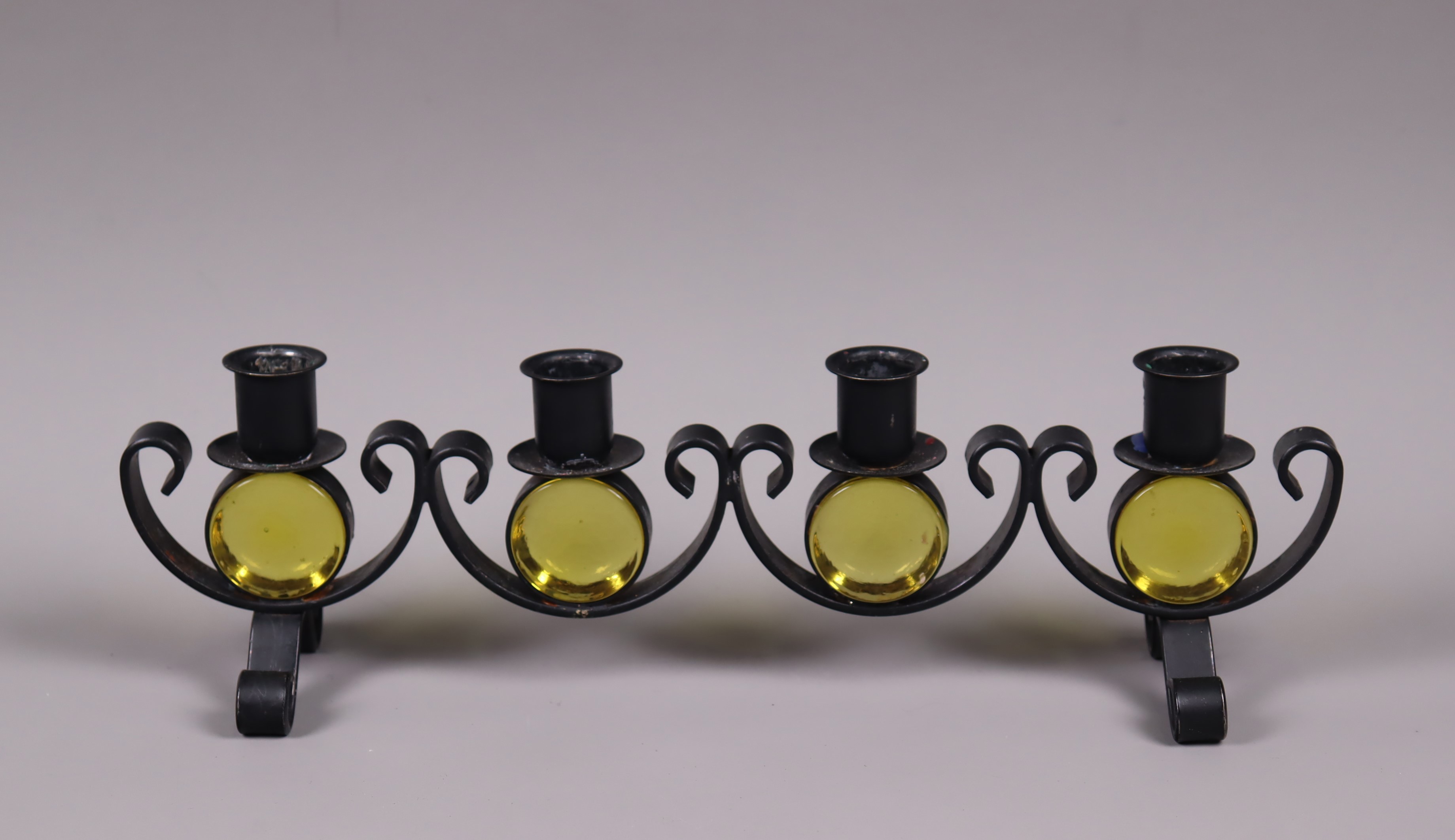 Mekaniska Fjädrar, Torsås, ljusstake, smide och glas