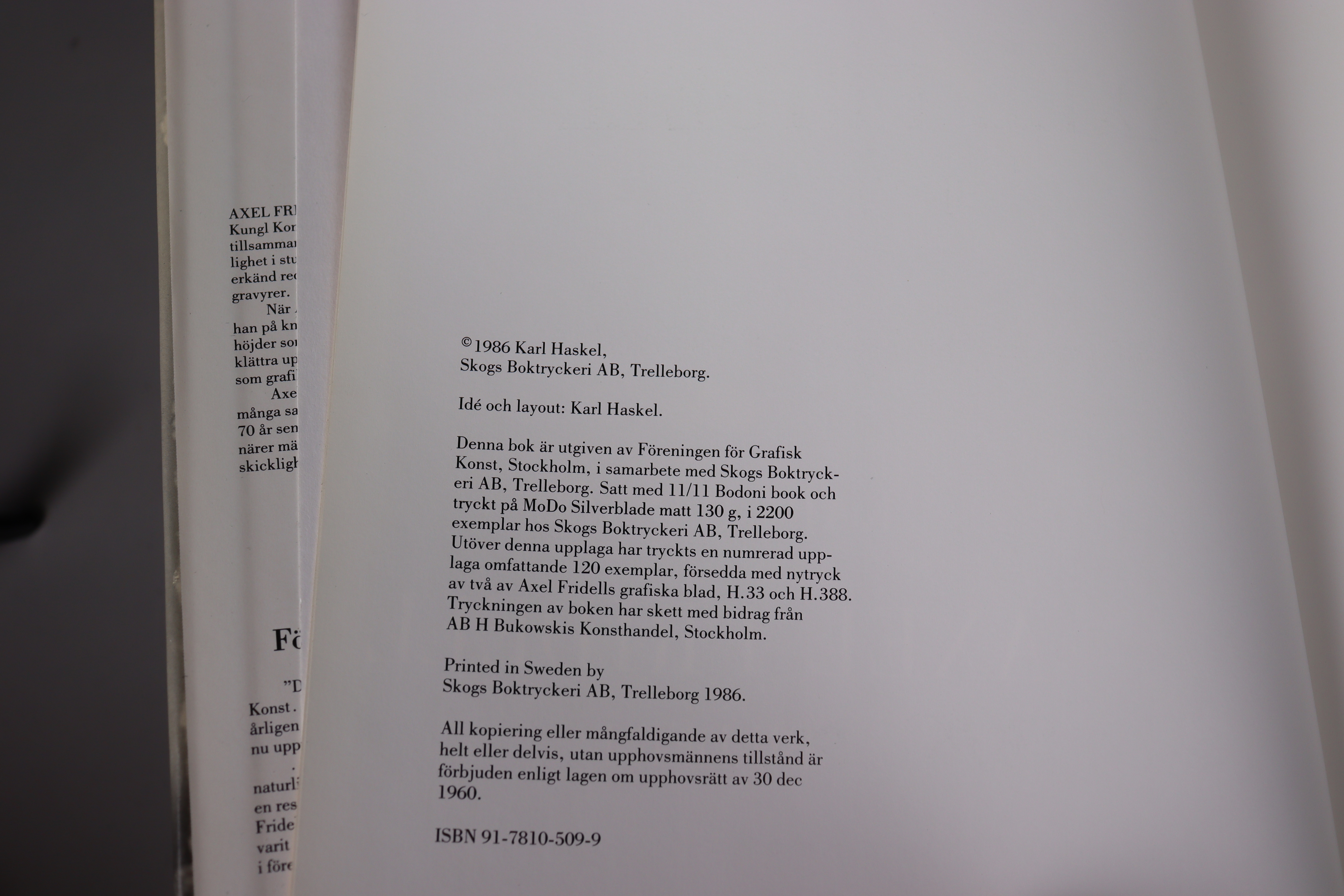 Bilder Karl Haskel, Axel Fridell Bilder I & II, Katalog över Axel Fridells grafiska verk
