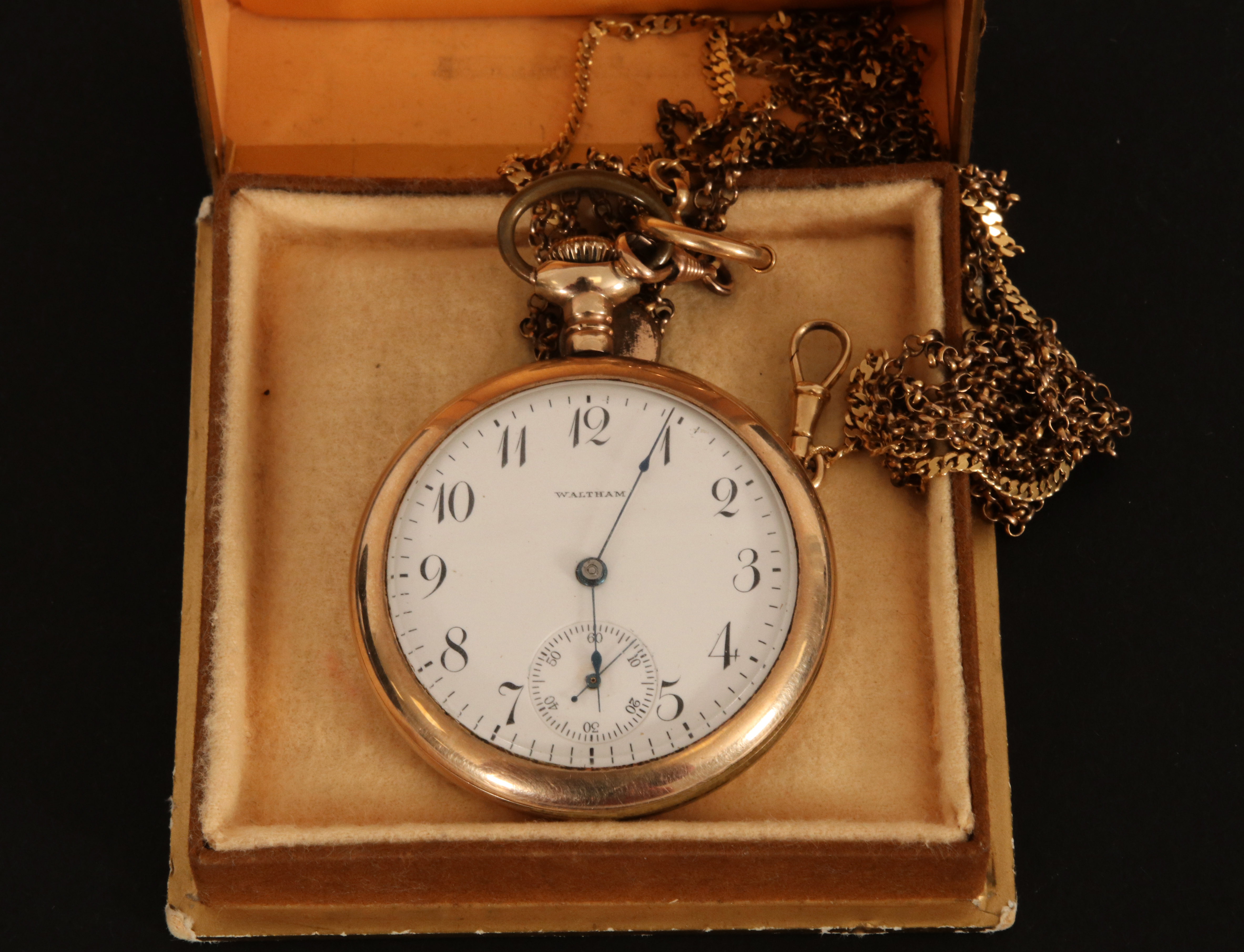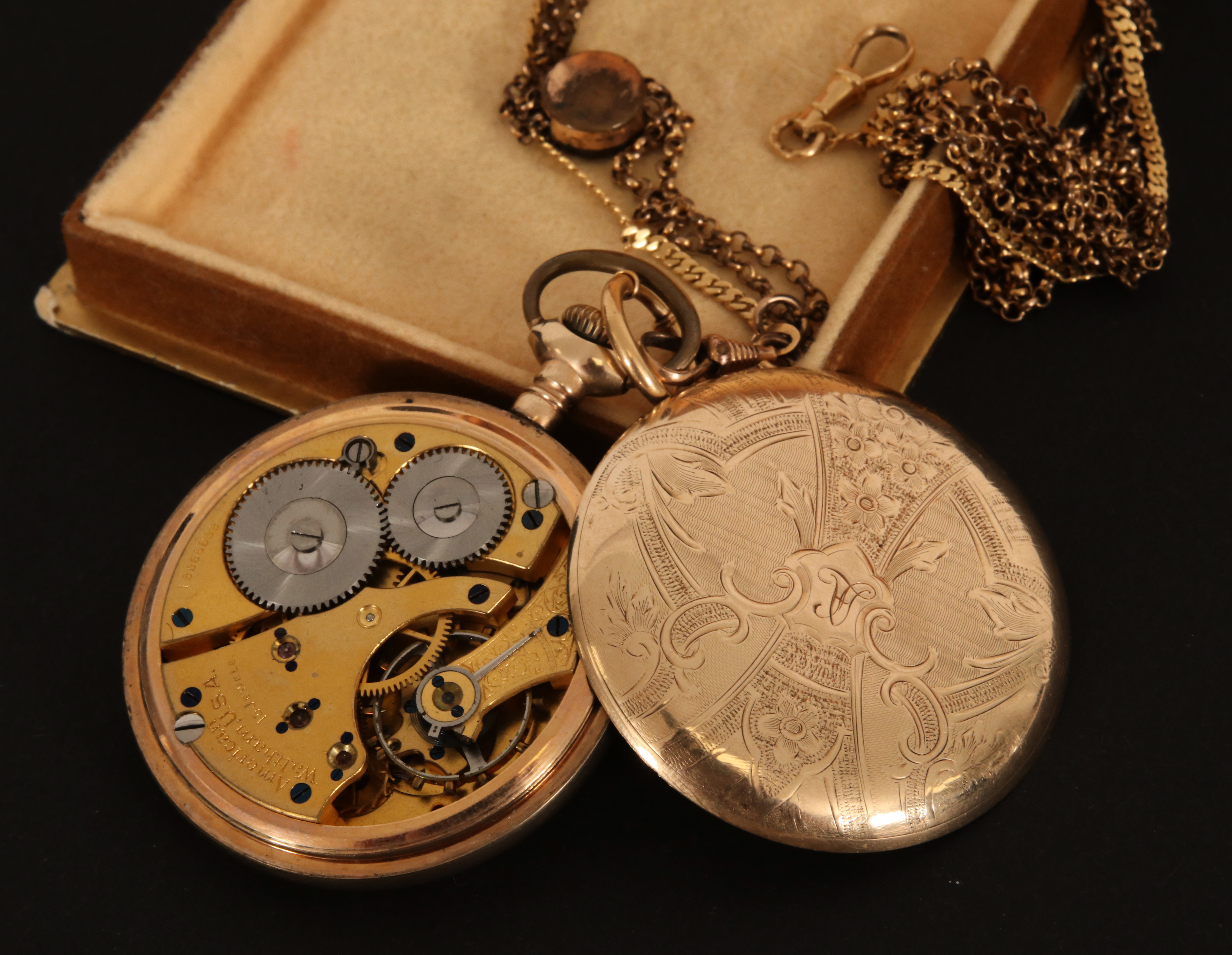 Doublé. Med graverad dekor. Emaljerad urtavla.