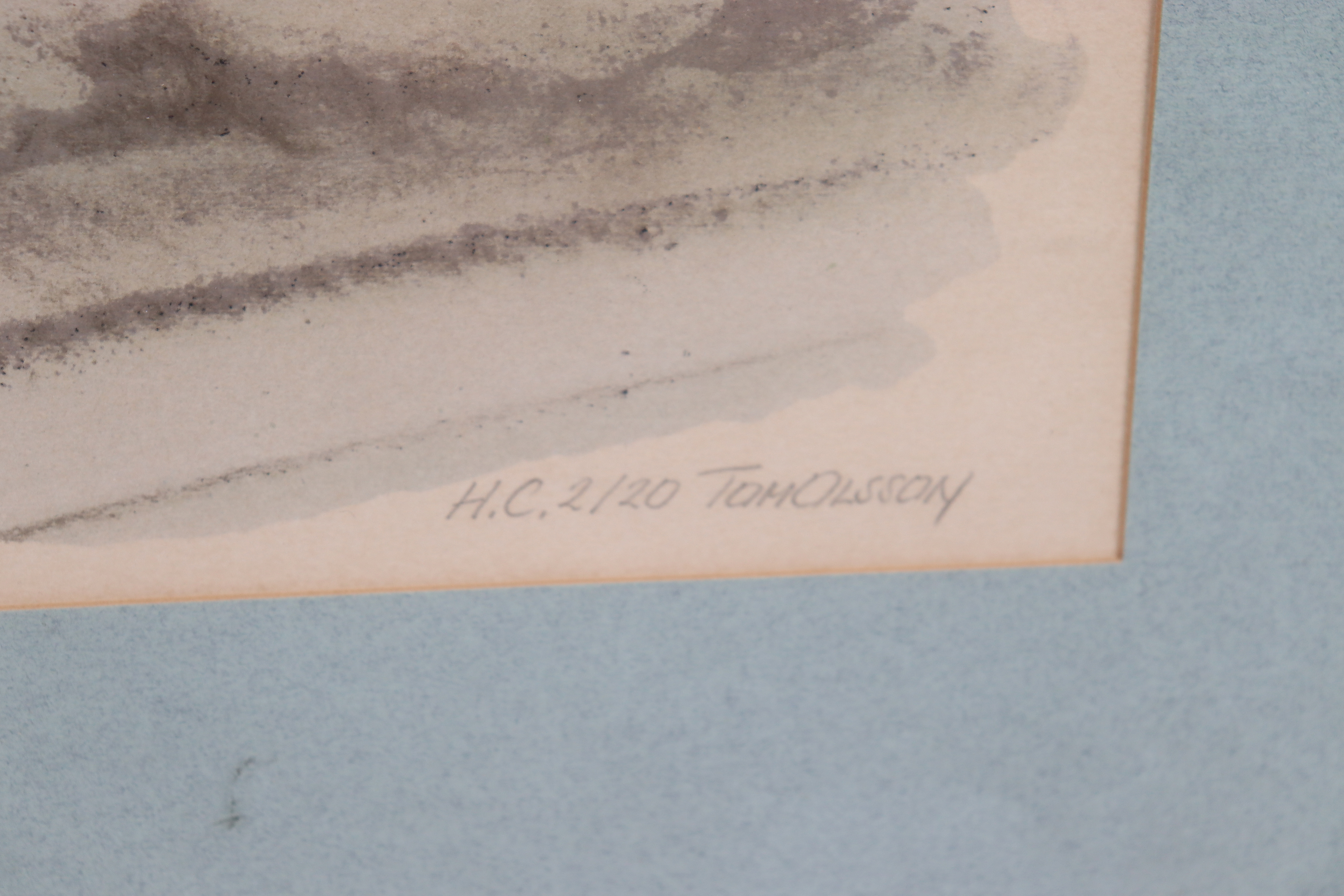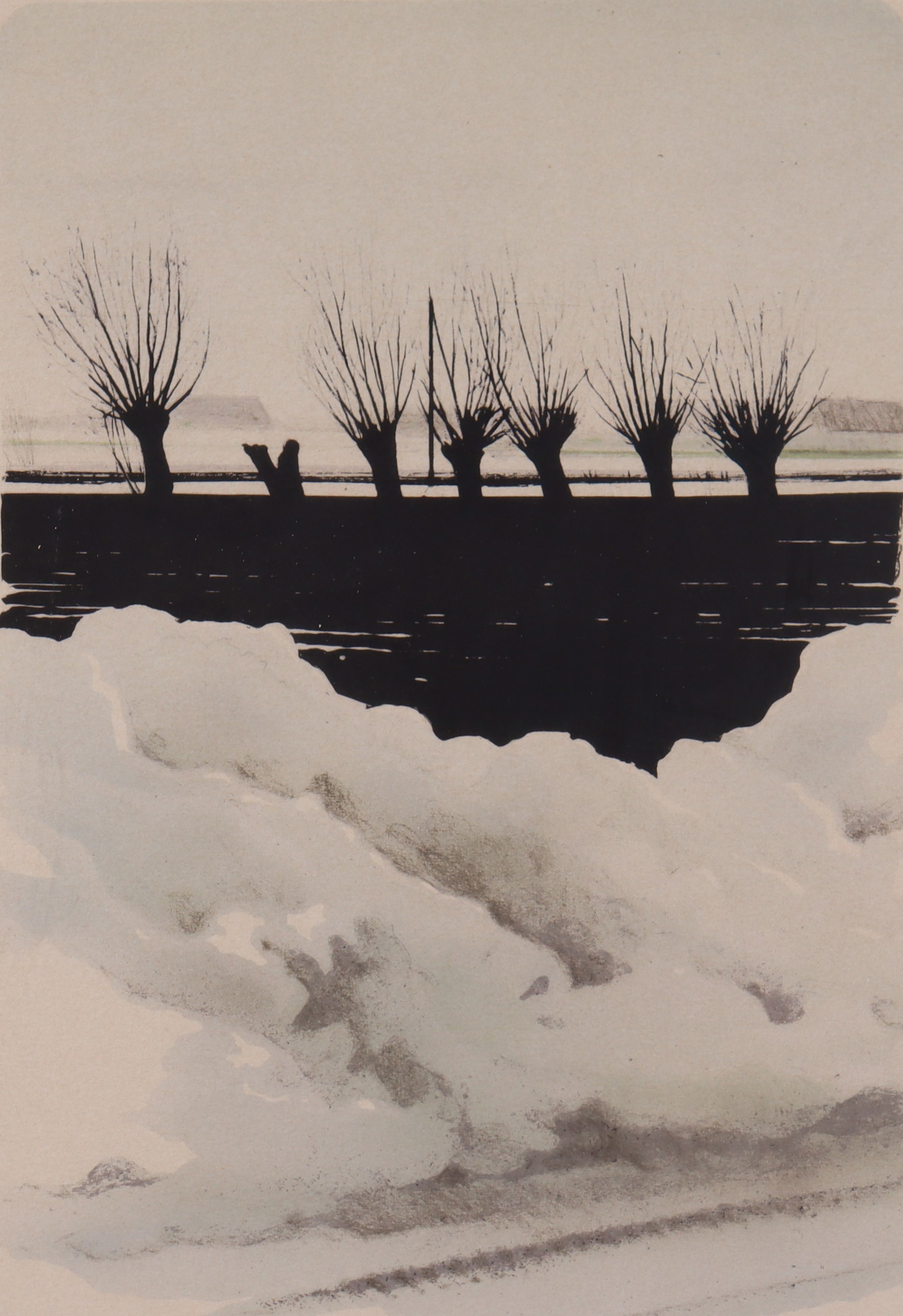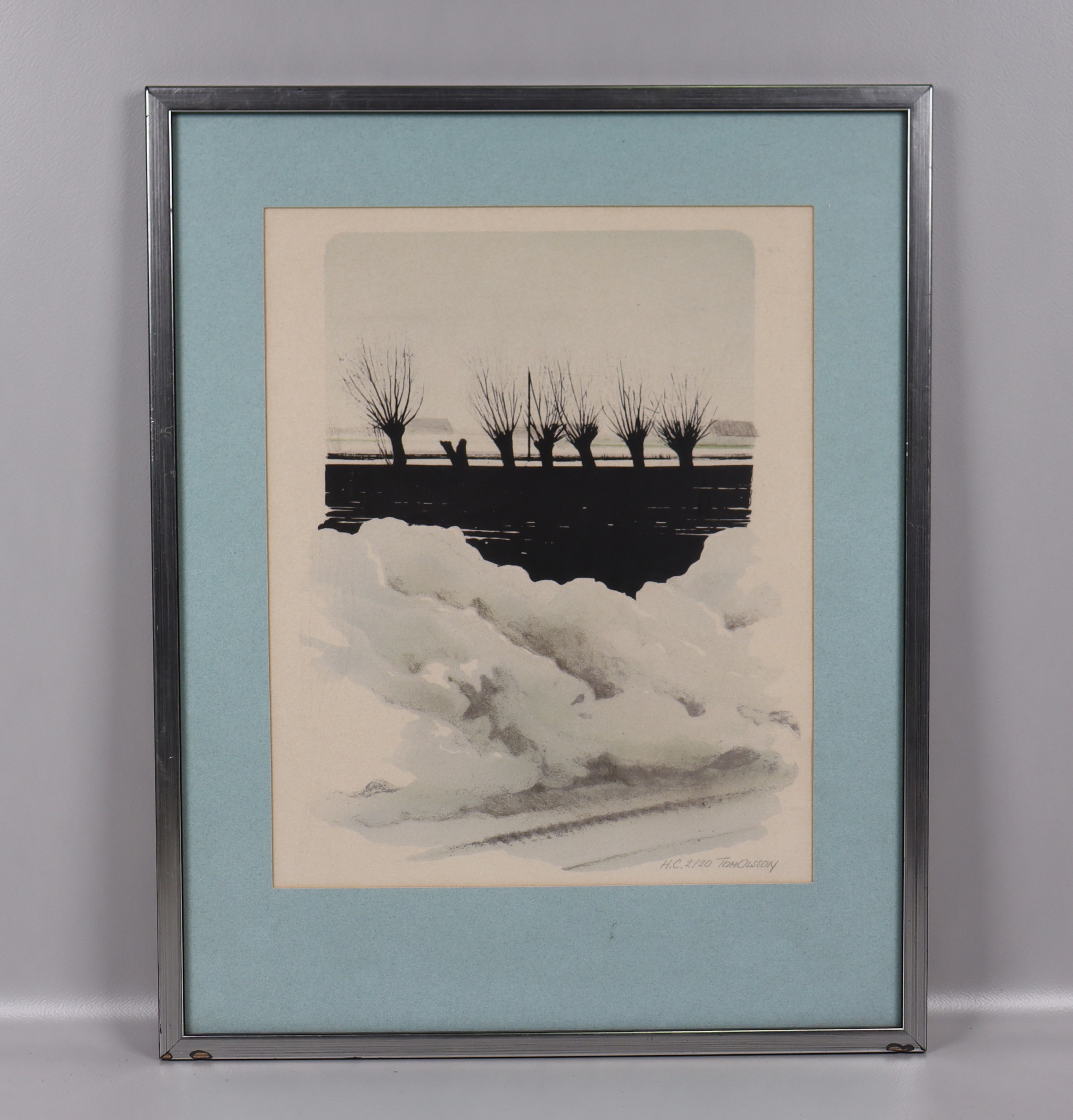 Bilder Tom Olsson, litografi, pileträd i fjärran