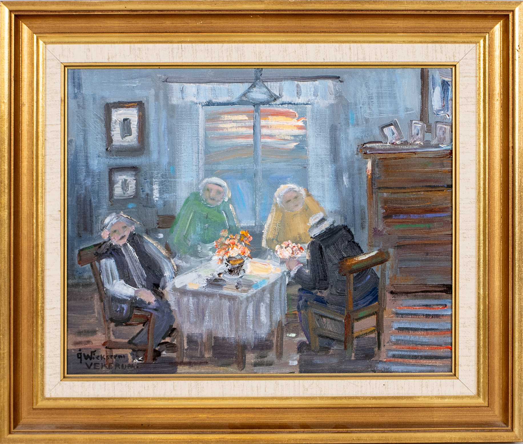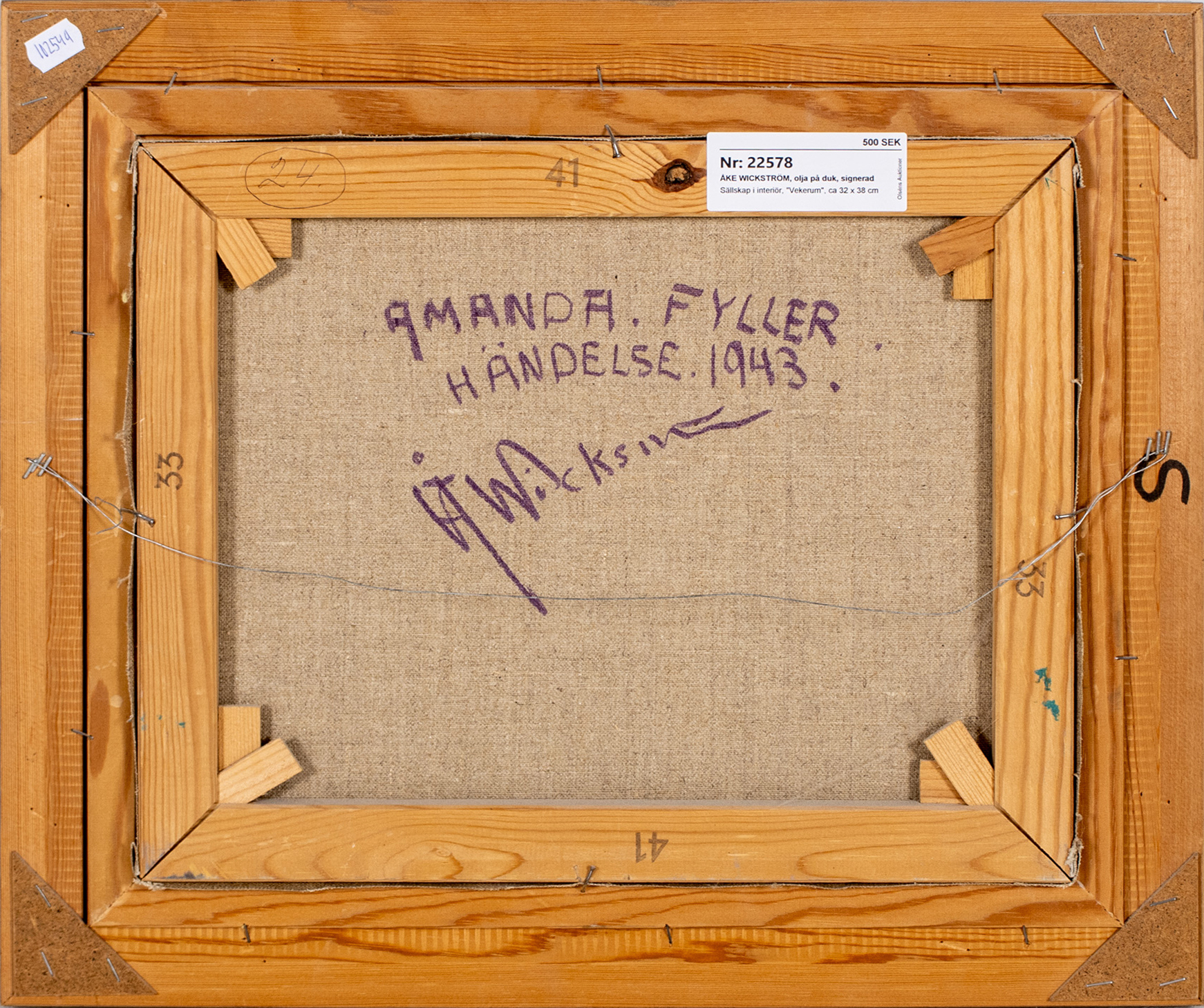 Sällskap i interiör, "Vekerum", "Amanda fyller, händelse 1943", ca 32 x 38 cm