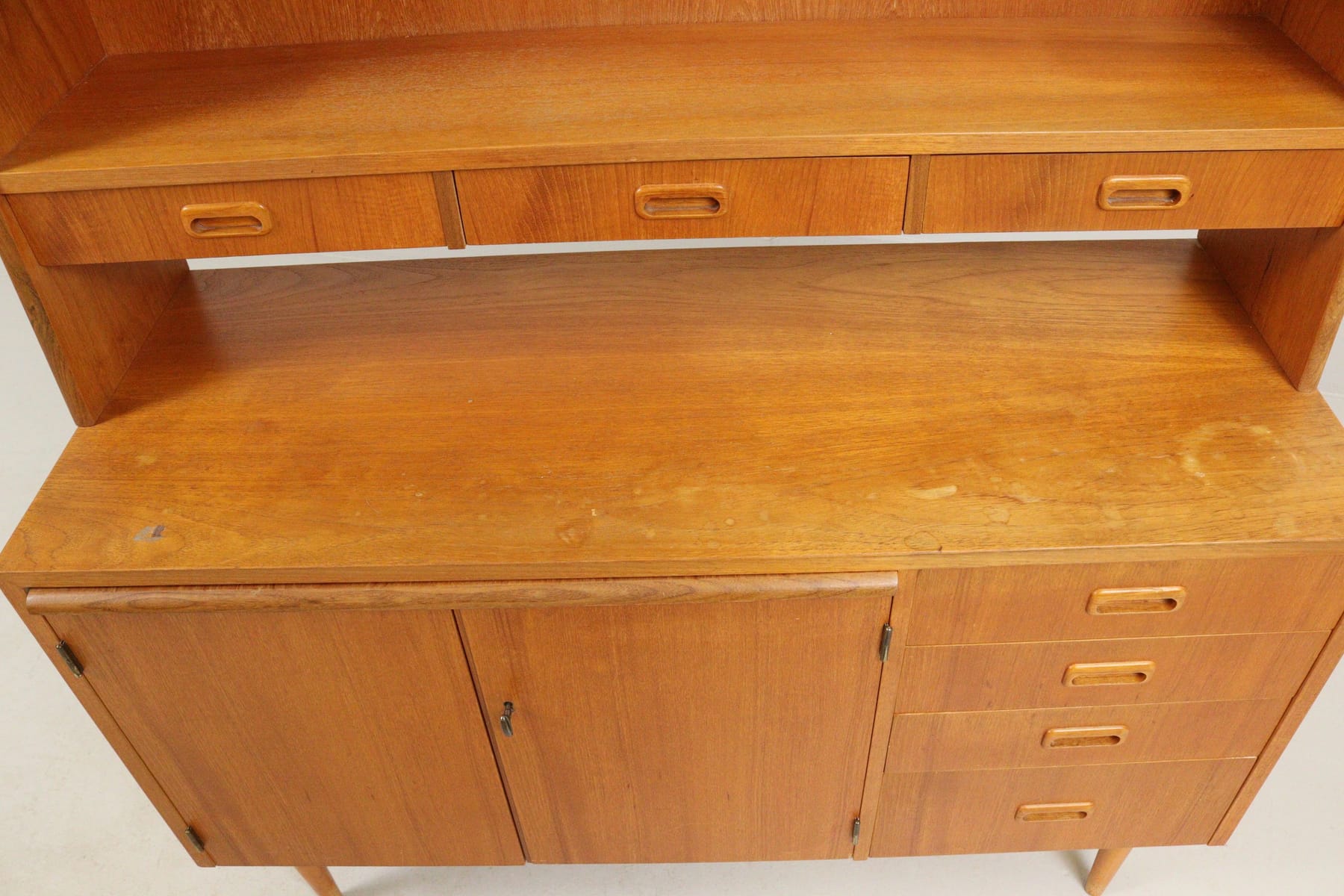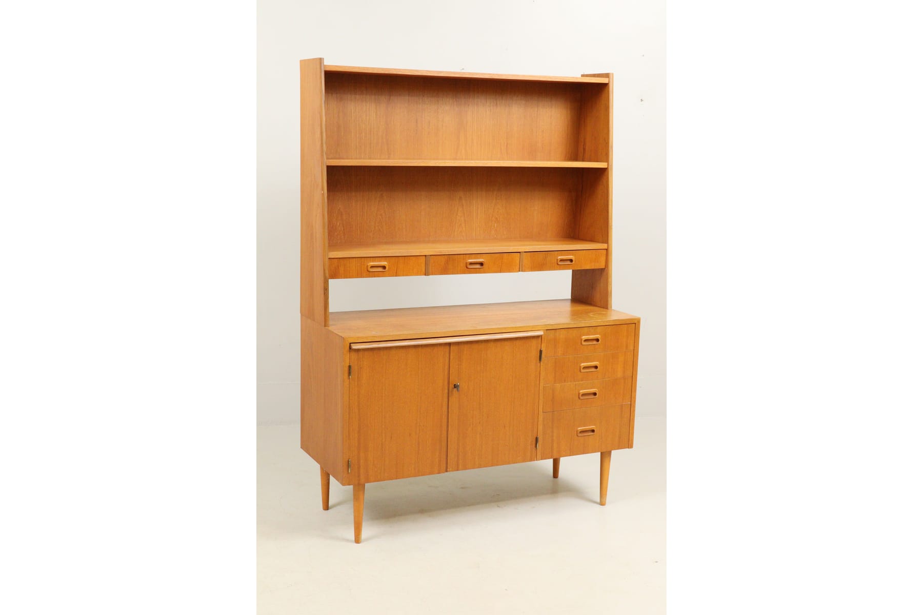 Bokhylla, teak, med skrivskiva