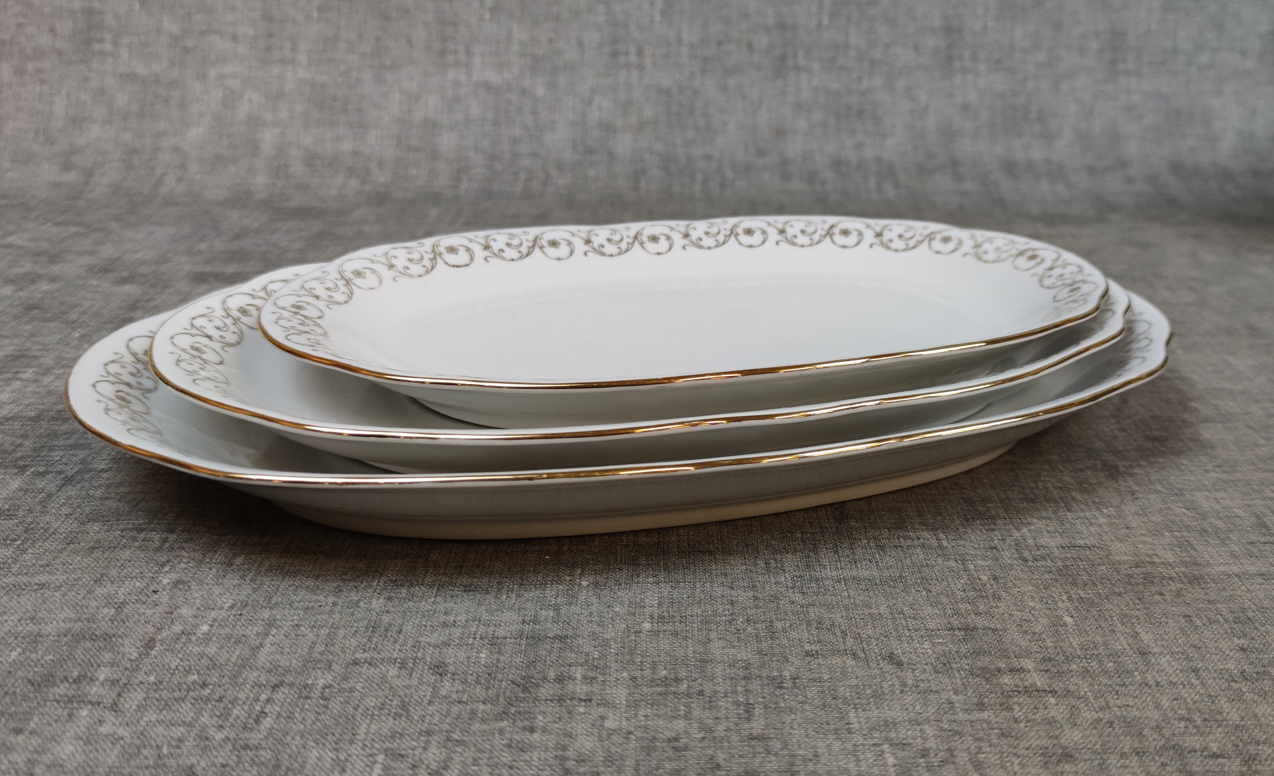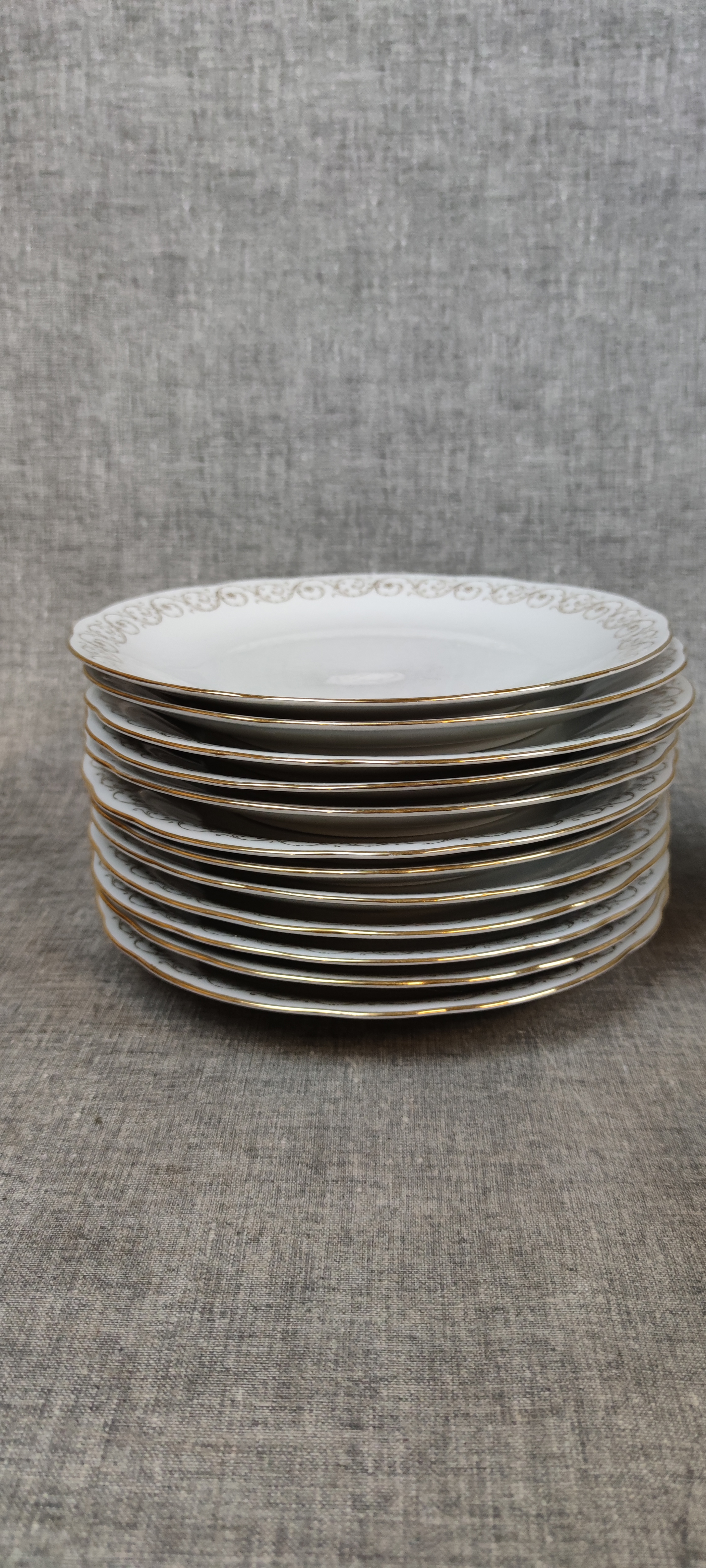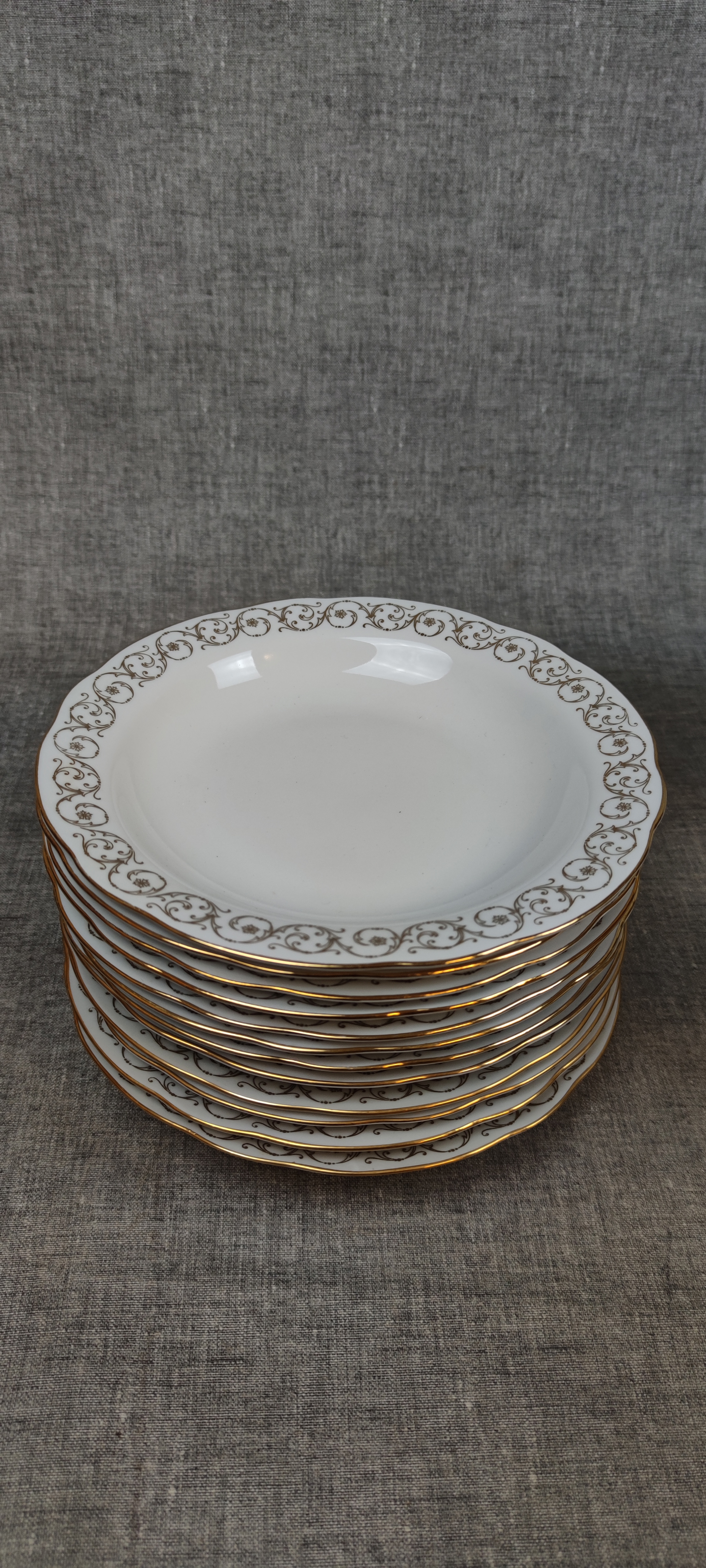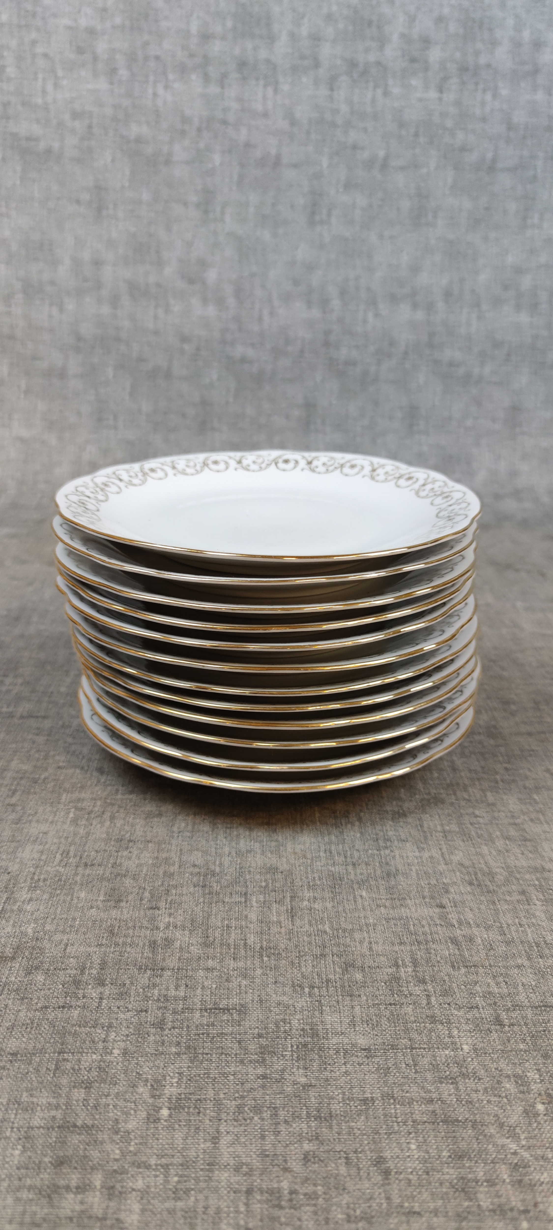 12 Flata tallrikar, 12 Djupa tallrikar, 12 Förrätts tallrikar, 12 Assietter, 5 Uppläggning, 1 Såsskål & 1 Kanna.