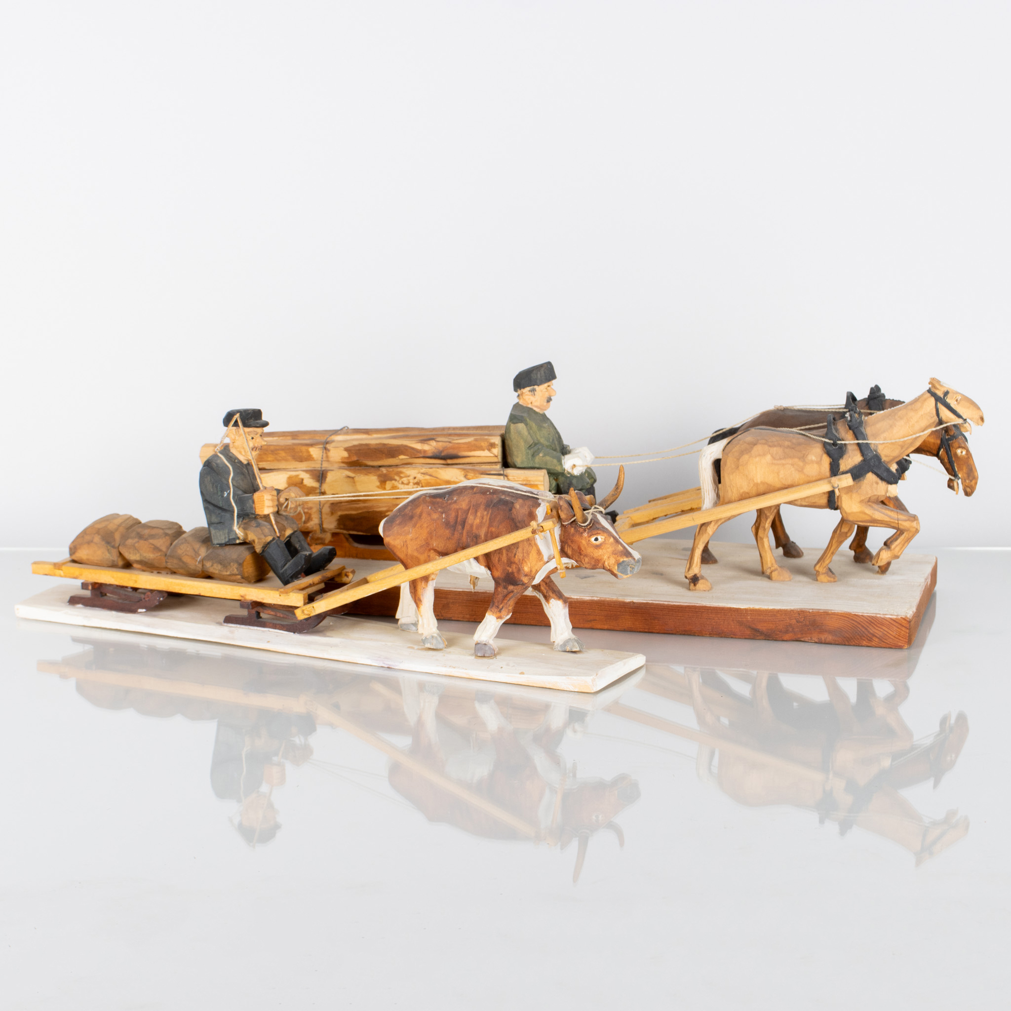 Bilder FIGURER, 2 st, skuret och bemålat trä, bla signerad och daterad Sigge 1972