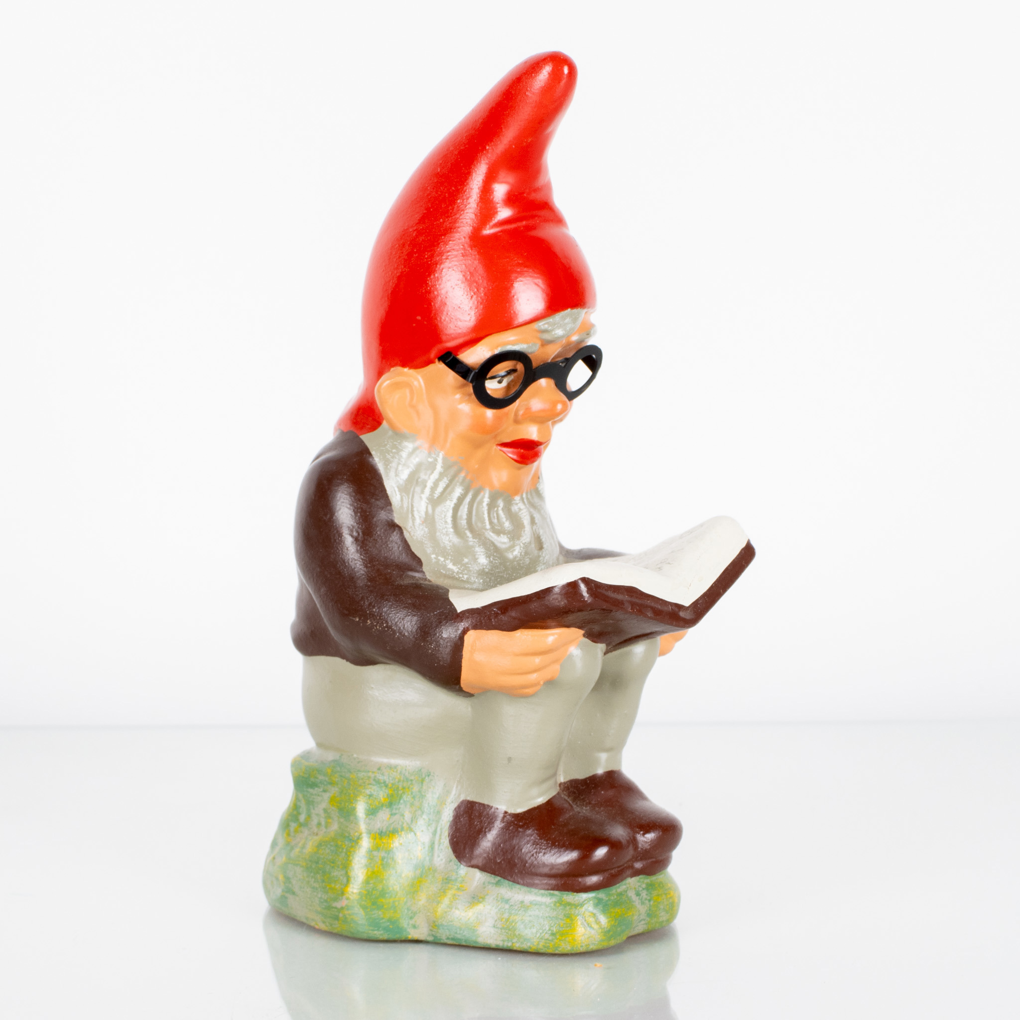 Läsande tomte, etikettmärkt Heissner no 653, höjd ca 21 cm