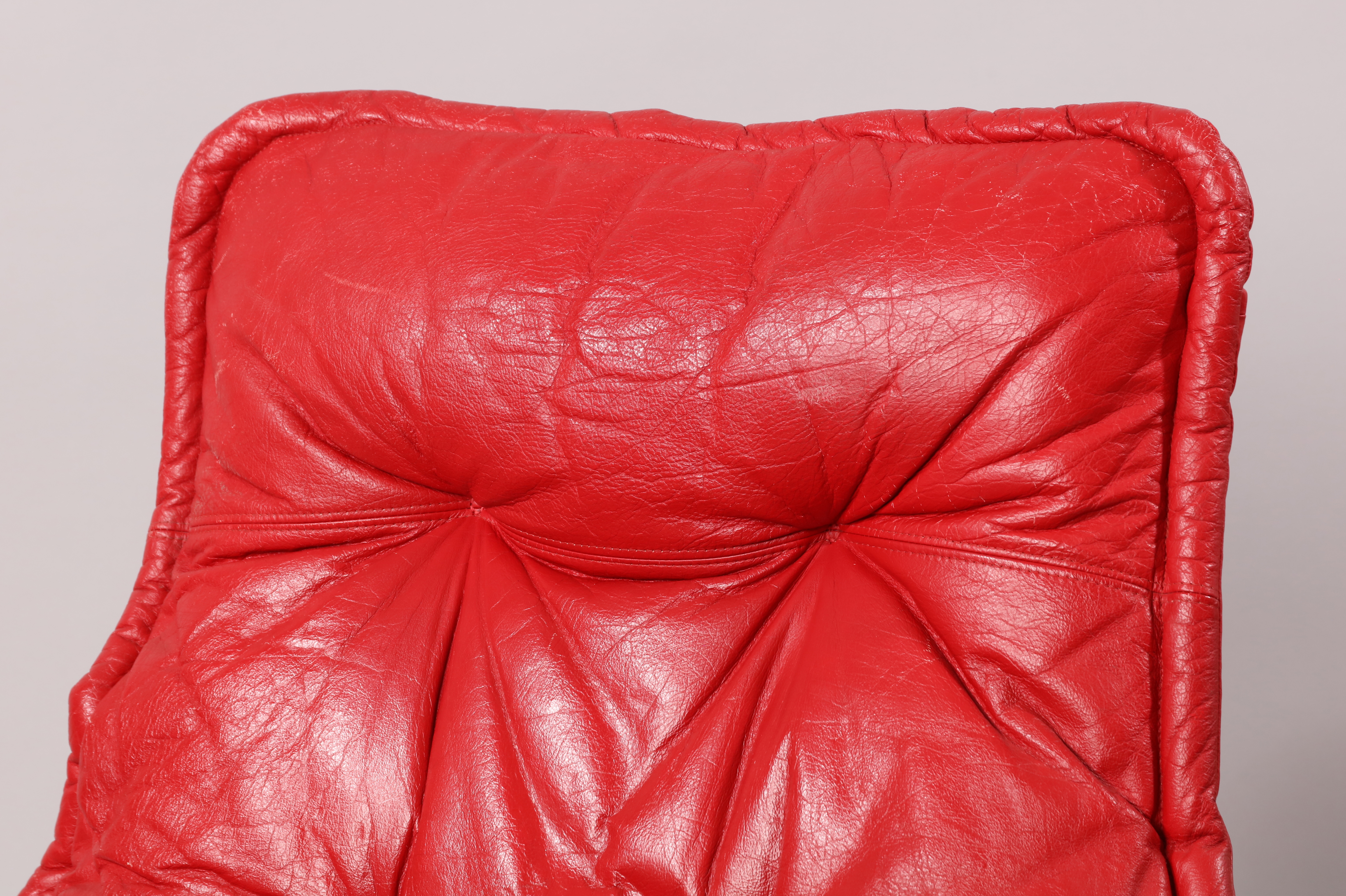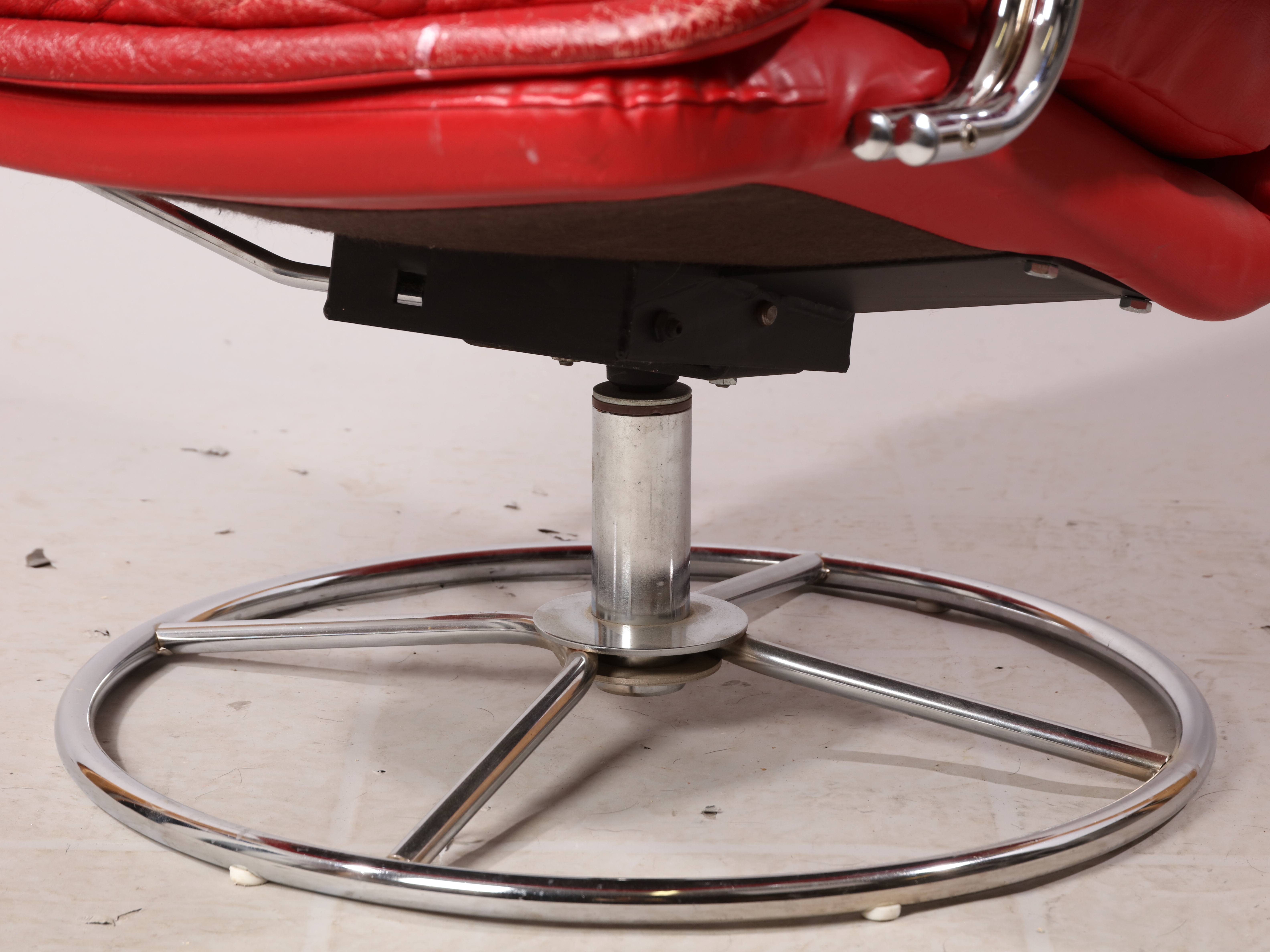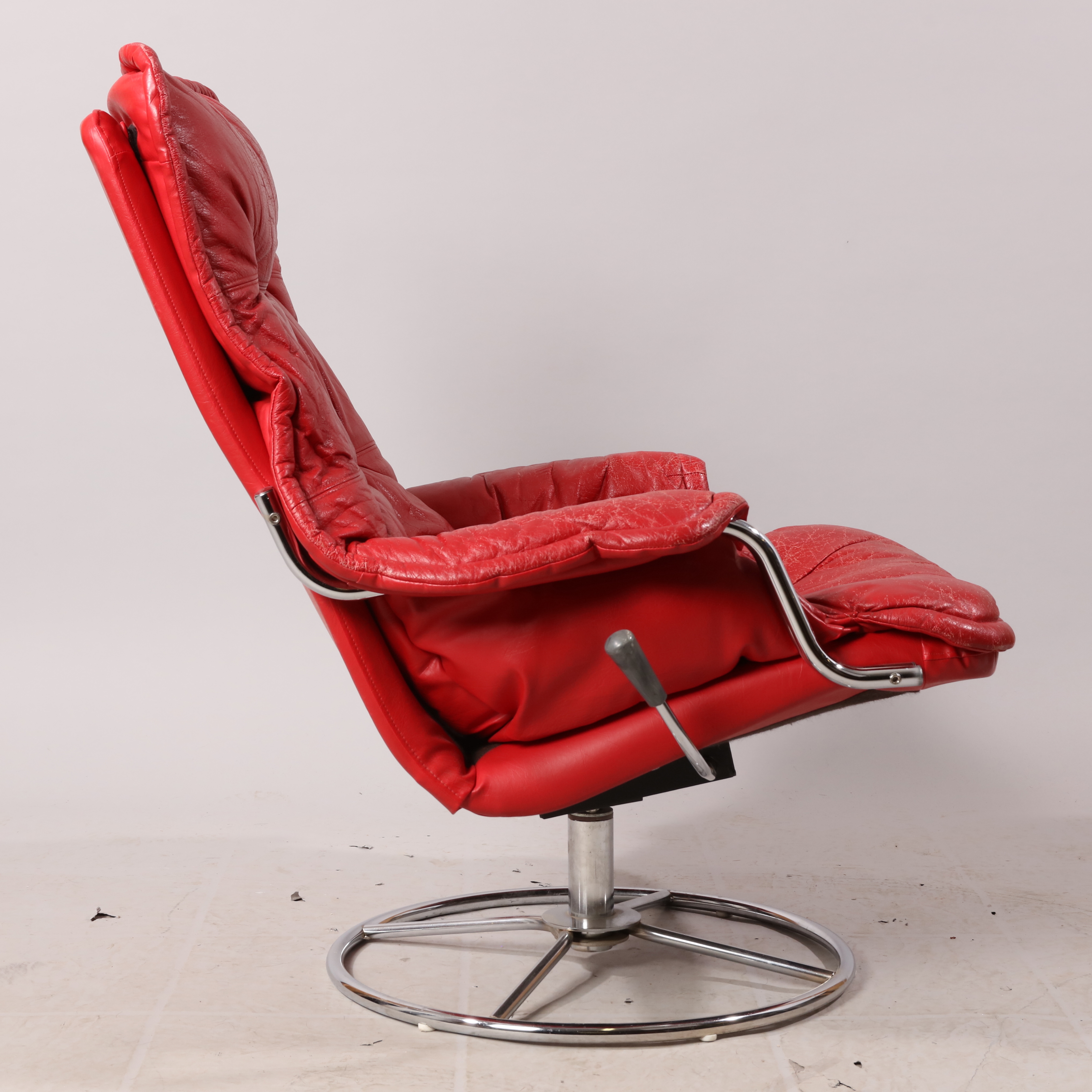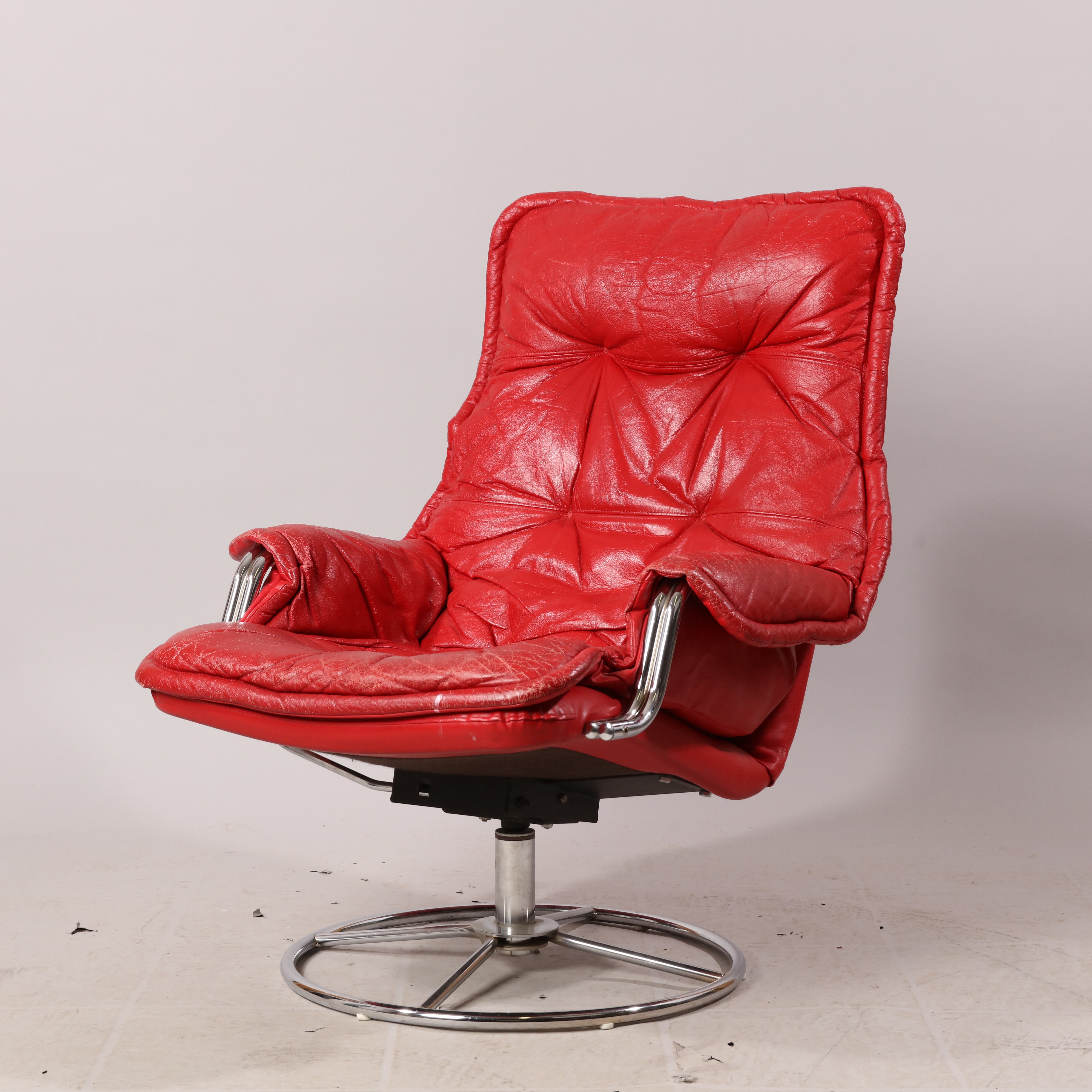 SNURRFÅTÖLJ, 1960/70-tal, rött skinn