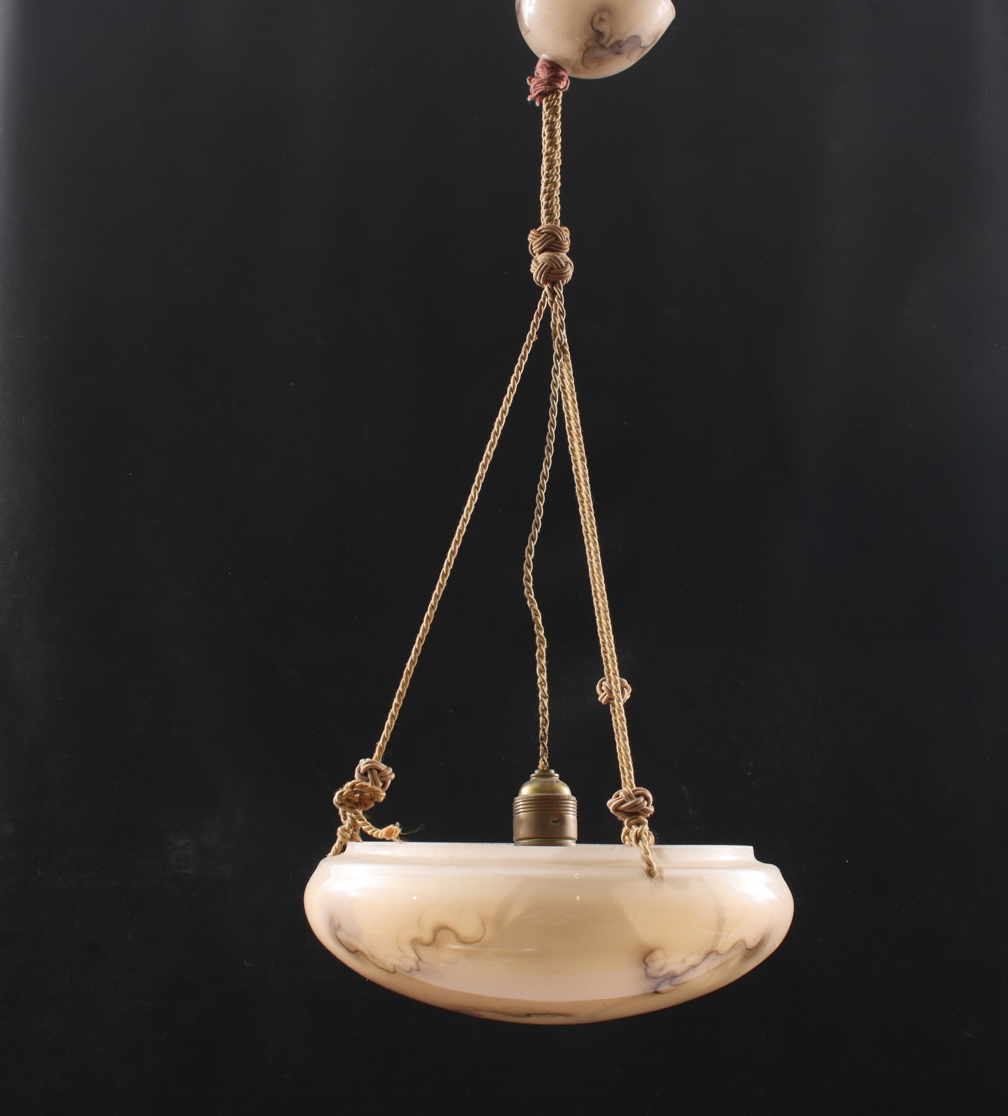 både skärm och takkopp i marmorerat glas, 1930,40-tal, höjd 68 cm, diameter 30 cm. (vån1)