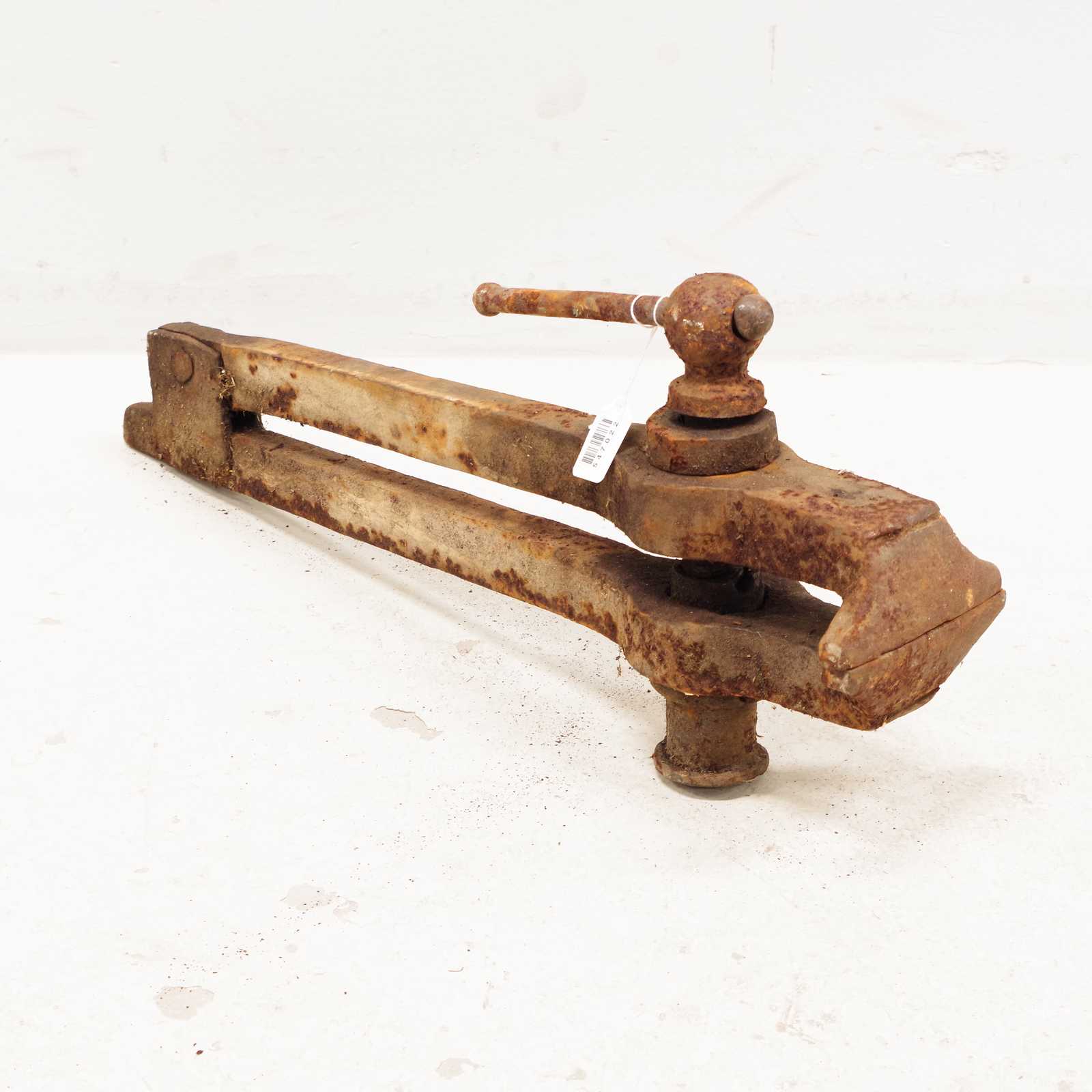 1970-tal, rödlackerad metall och mässing, höjd 47 cm