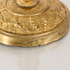 Avsmalnande skaft, rund fotplatta med dekor av bladverk, lösa ljusmanschetter, höjd 27 cm