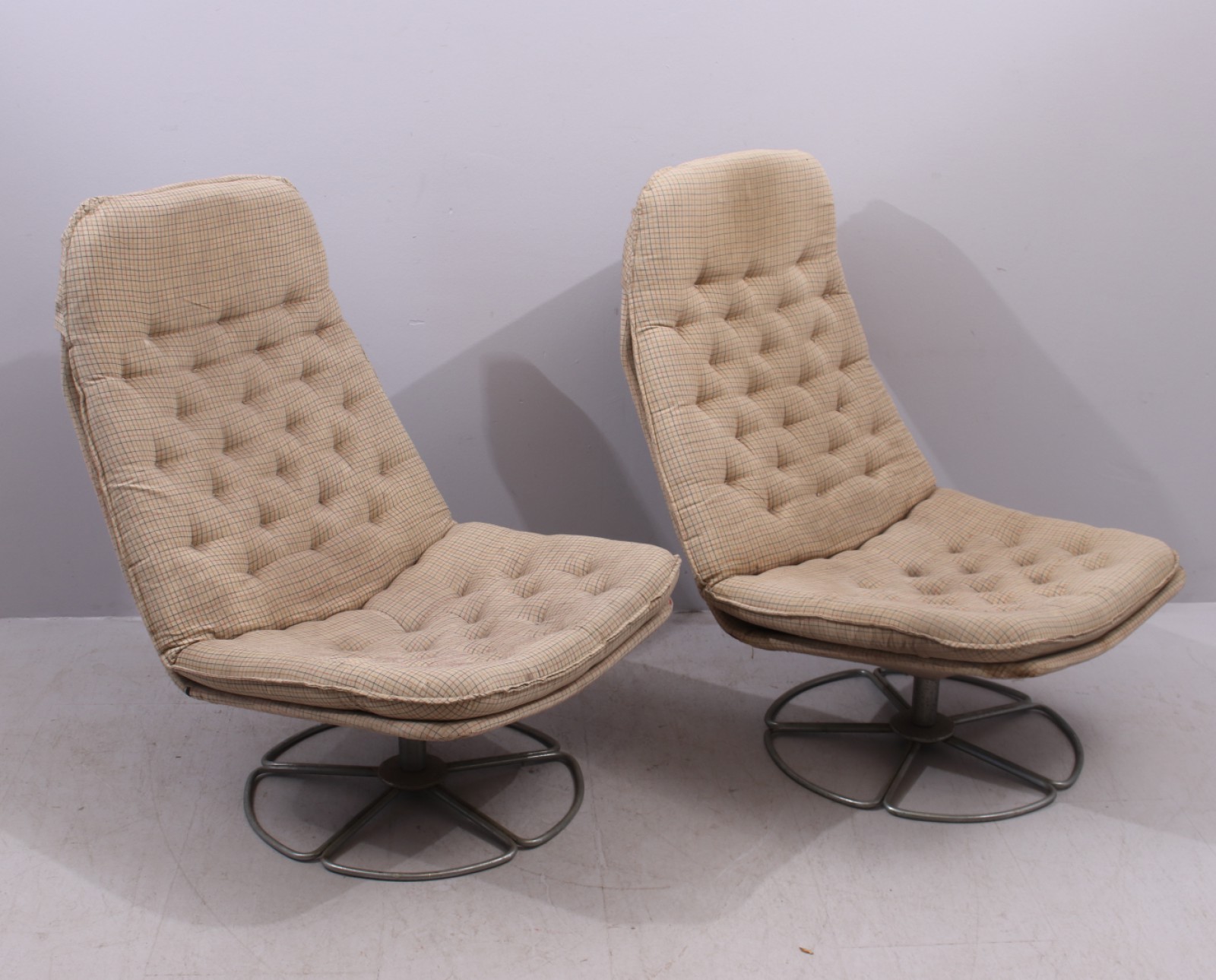 2 stycken (1 par), tygklädsel, 1970-tal, snurrbara, åldersrelaterat slitage, smutsiga, Rh.100, B.68, Sh.38 cm. (vån1)
